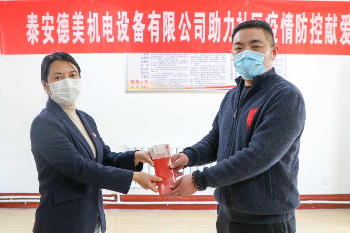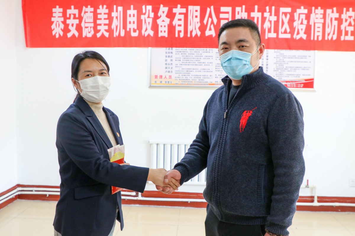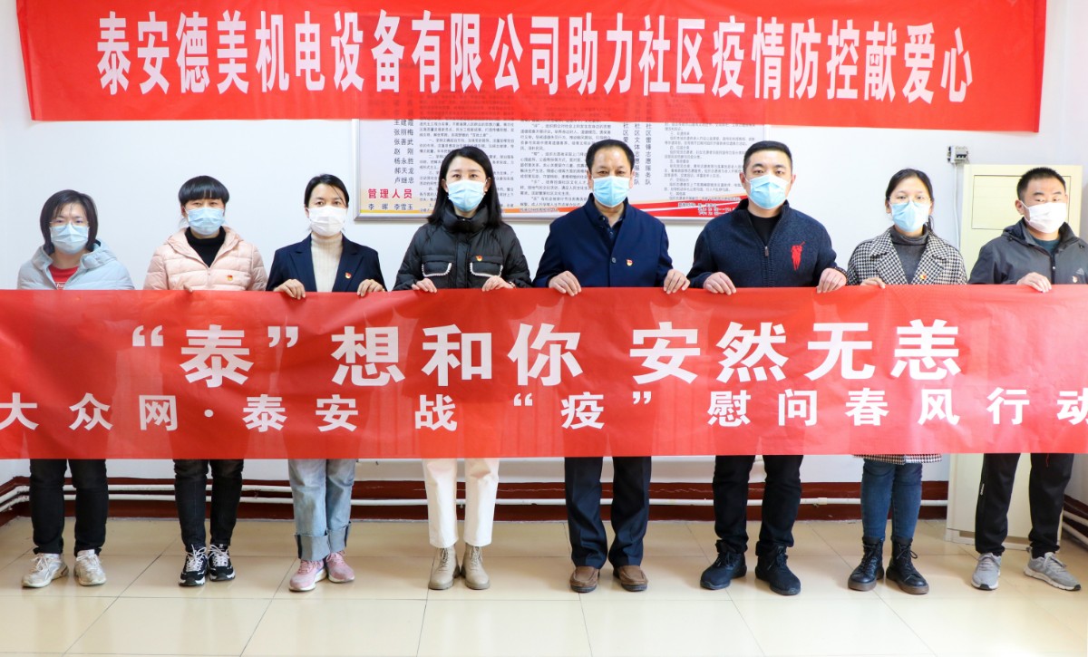 在疫情防控關(guān)鍵時期,泰安德美機(jī)電設(shè)備有限公司作為泰安國際商會副會長單位、泰山區(qū)政協(xié)委員獻(xiàn)出愛心,通過市貿(mào)促會、區(qū)貿(mào)促會牽線搭橋,為鐵路新村捐贈防疫物資,