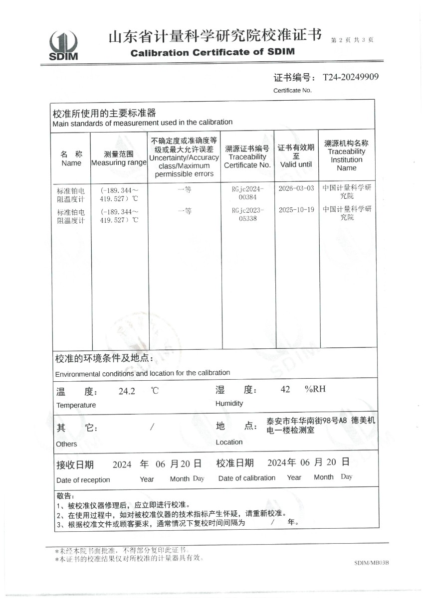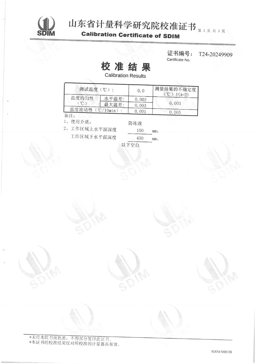 | 上一條:中溫干體爐(50~650℃)校準(zhǔn)證書 | 下一條:高精度制冷恒溫槽(-80~100℃)校準(zhǔn)證書 |
