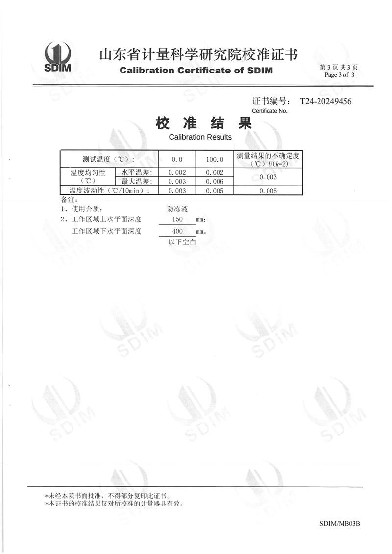 制冷恒溫槽(0~100℃)校準(zhǔn)證書