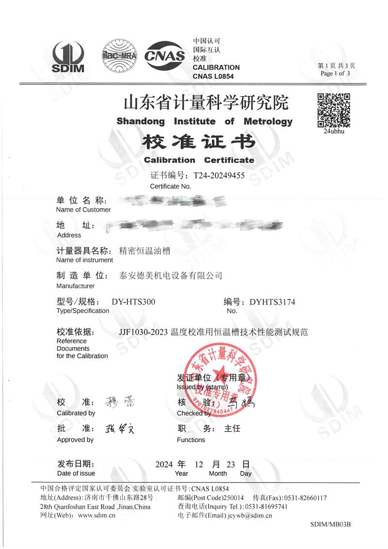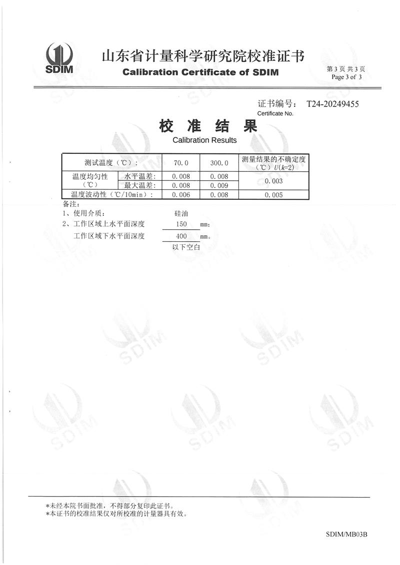 油槽(70~300℃)校準證書 2024-12-26 本文被閱讀 7128 次