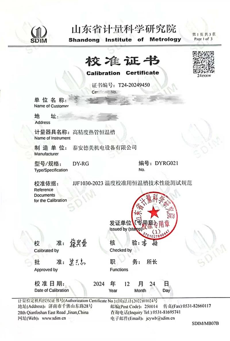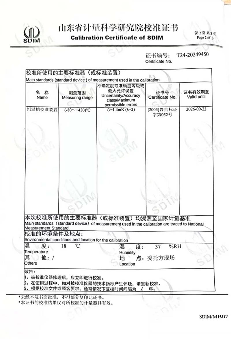 | 上一條:油槽(70~300℃)校準(zhǔn)證書(shū) | 下一條:高精度制冷恒溫槽(-80~100℃)校準(zhǔn)證書(shū) |