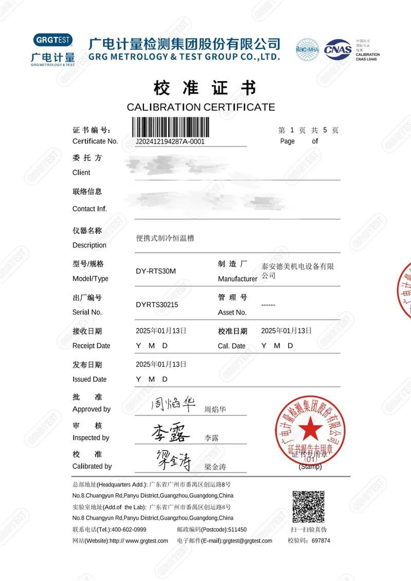 | 上一條:便攜式制冷恒溫槽(-30-105℃)校準(zhǔn)證書(shū) | 下一條:高精度制冷恒溫槽(-80~100℃)校準(zhǔn)證書(shū) |