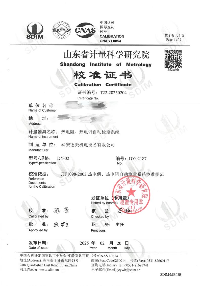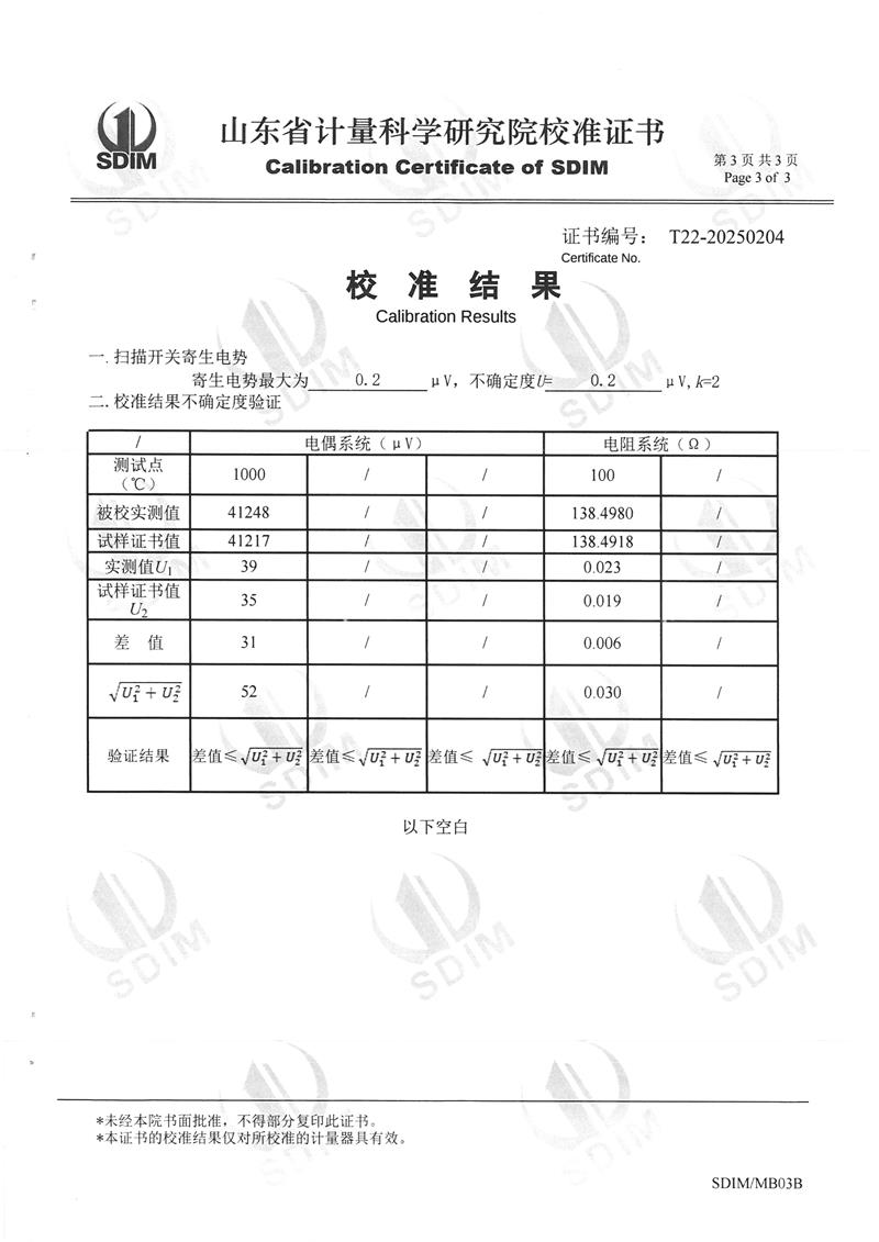 熱電阻、熱電偶自動(dòng)檢定系統(tǒng)校準(zhǔn)證書 2025-2-26 本文被閱讀 5141 次