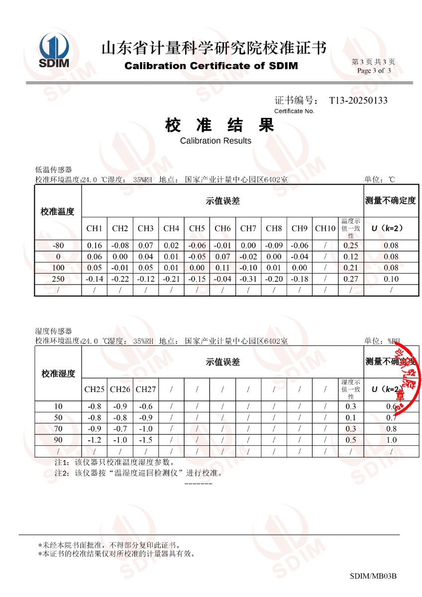 溫濕度巡檢儀測試系統(tǒng)校準證書