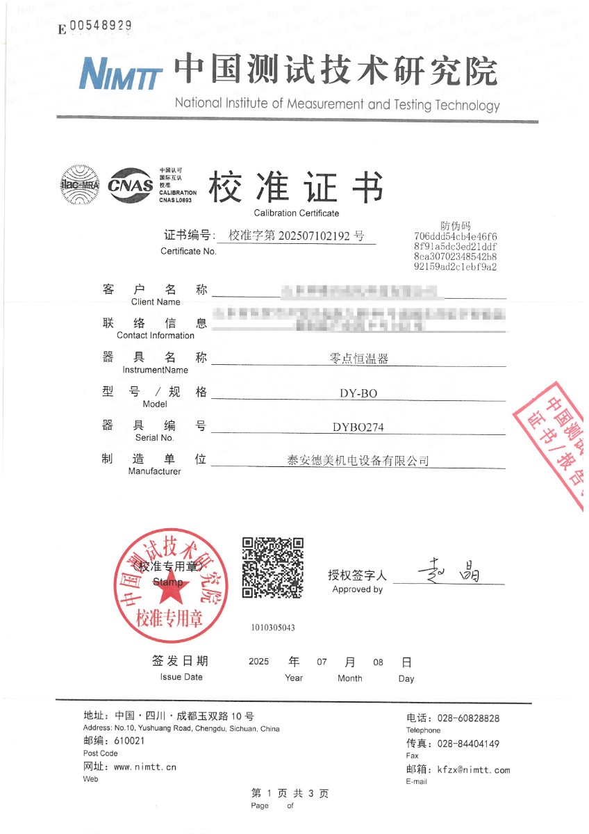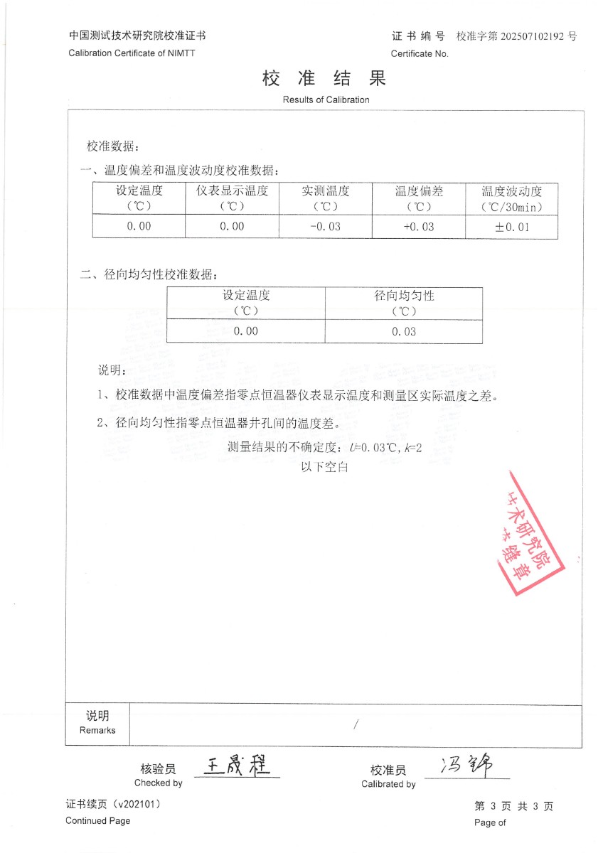 零點恒溫器校準(zhǔn)證書 2025-7-10 本文被閱讀 3090 次