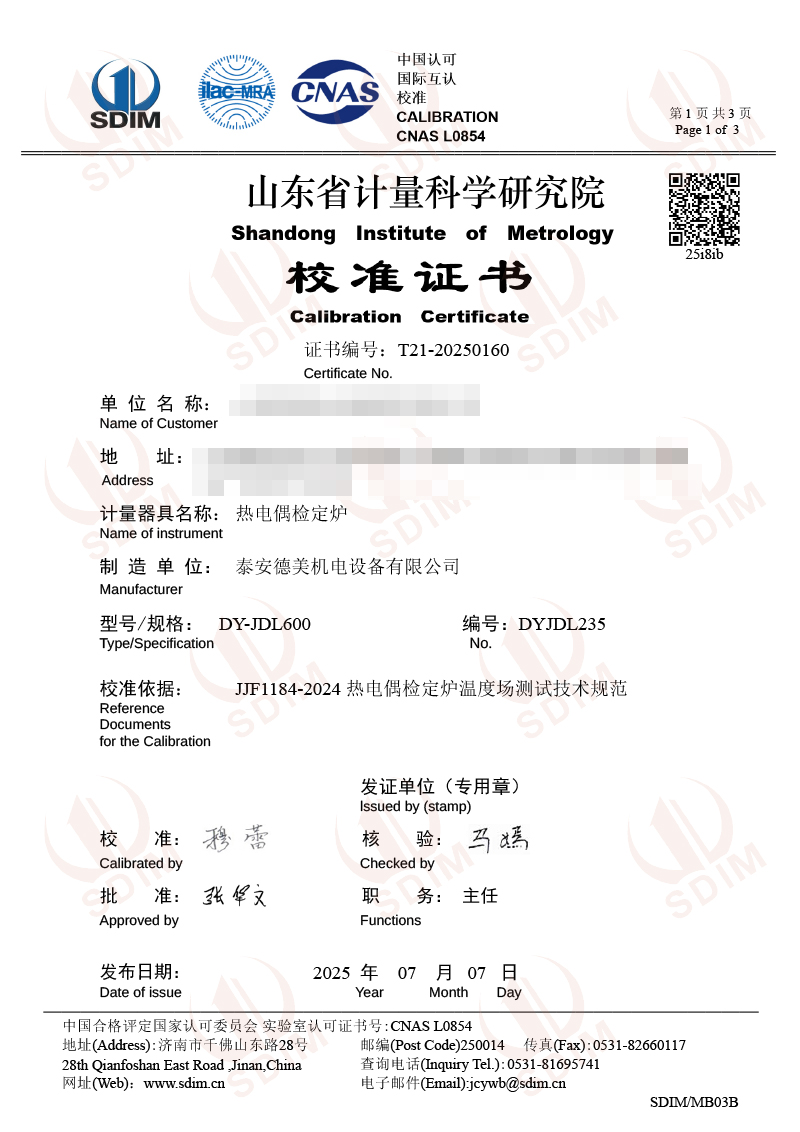 熱電偶檢定爐(300-1200℃)校準(zhǔn)證書 2025-7-10 本文被閱讀 3539 次