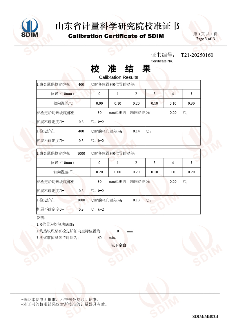 熱電偶檢定爐(300-1200℃)校準(zhǔn)證書