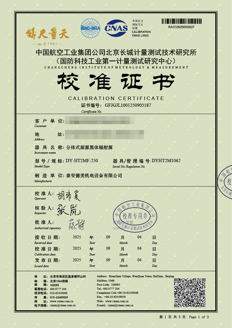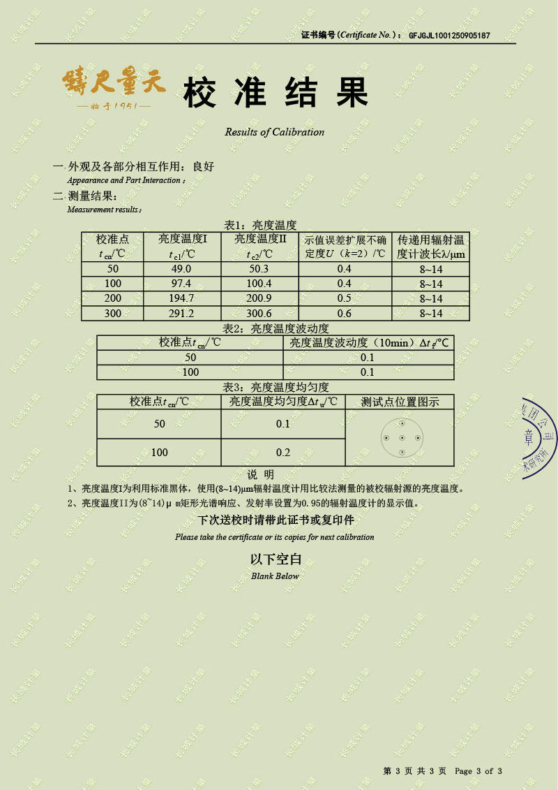 | 上一條:黑體輻射源(50-500℃)校準(zhǔn)證書(shū) | 下一條:高精度制冷恒溫槽(-80~100℃)校準(zhǔn)證書(shū) |