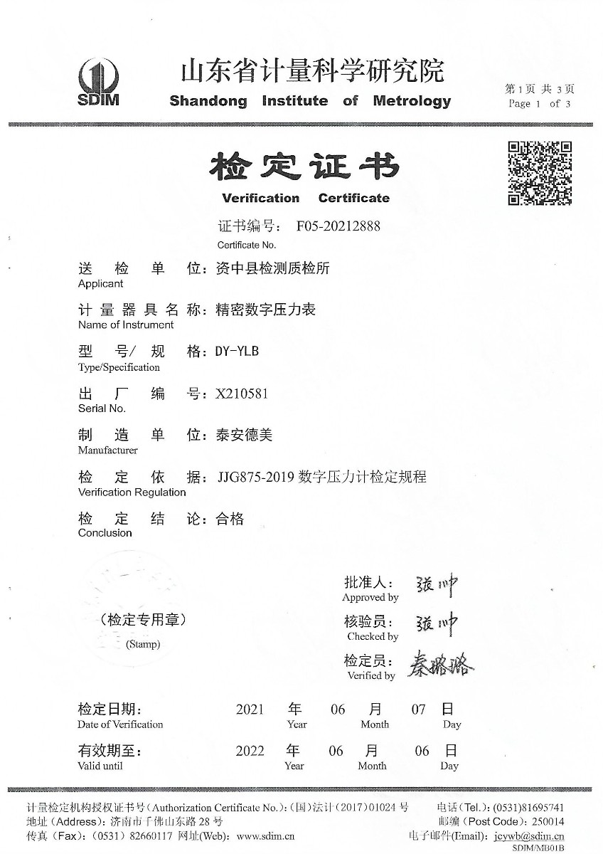 | 上一條:南昌計(jì)量檢定站-數(shù)字壓力校驗(yàn)儀 | 下一條:高精度制冷恒溫槽(-80~100℃)校準(zhǔn)證書 |