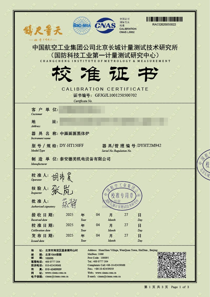 面源黑體爐(室溫+5-500℃)校準證書 2025-5-9 本文被閱讀 3372 次