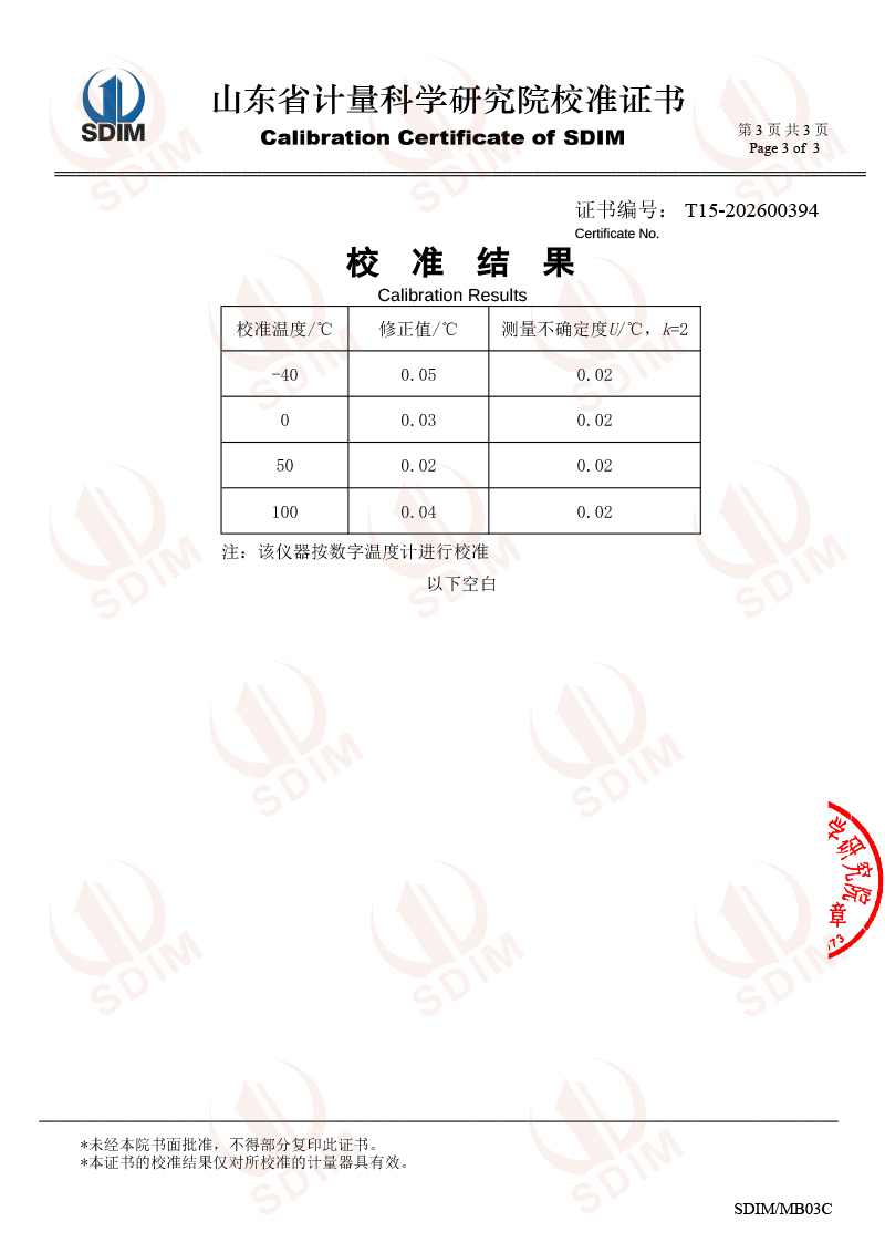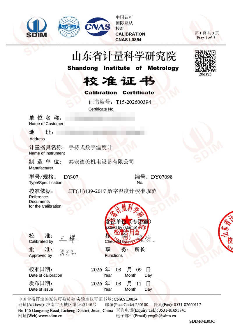 數(shù)字溫度計(jì)-校準(zhǔn)證書 2026-3-11 本文被閱讀 760 次