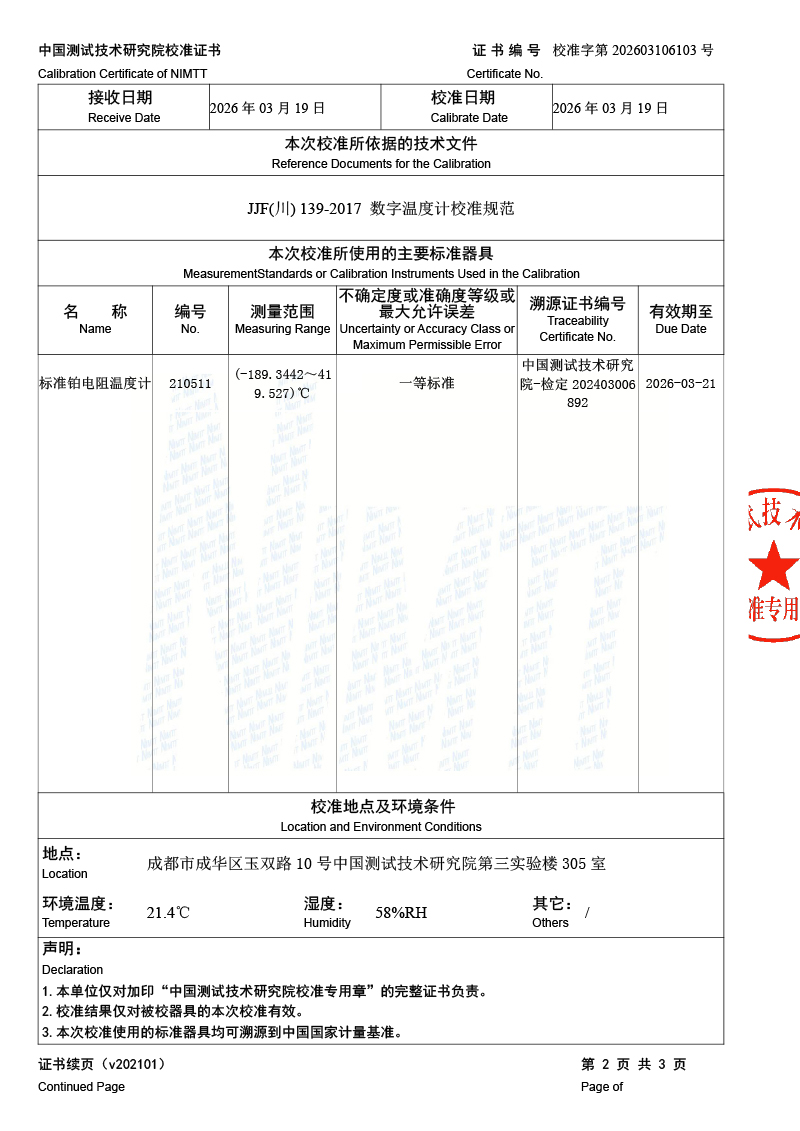 數(shù)字溫度計-校準(zhǔn)證書 2026-3-20 本文被閱讀 236 次