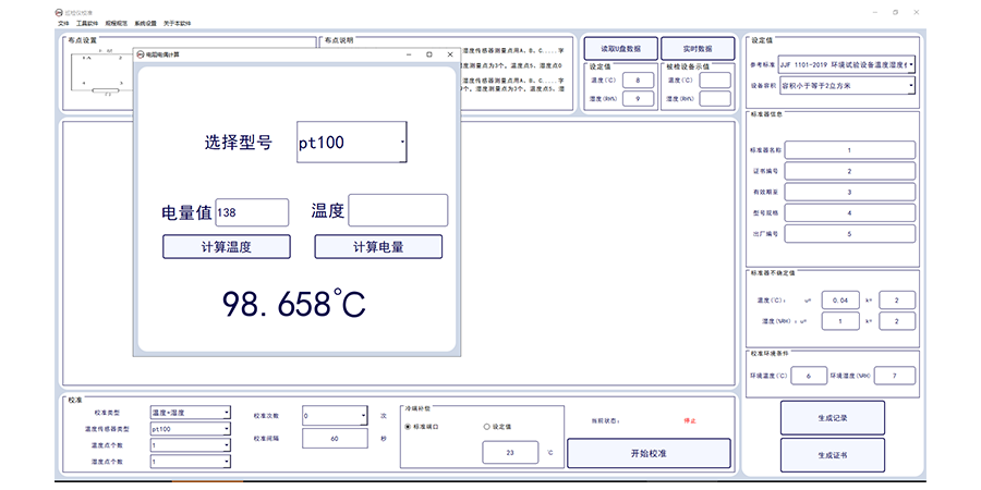 上位機軟件可進行規(guī)范選擇,可進行校準類型、傳感器類型,校準次數(shù),校準間隔設置,生成excel的單條記錄/word的證書記錄。