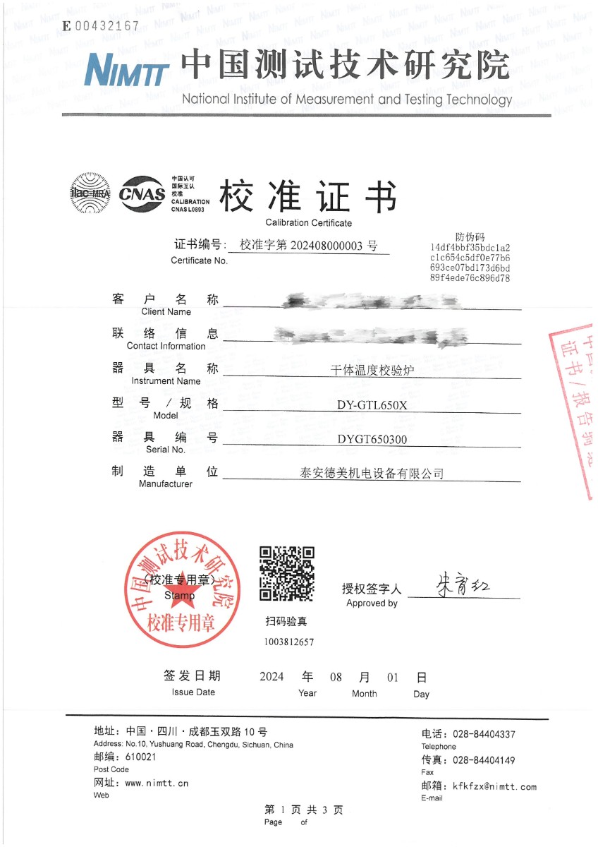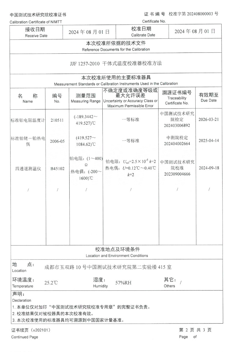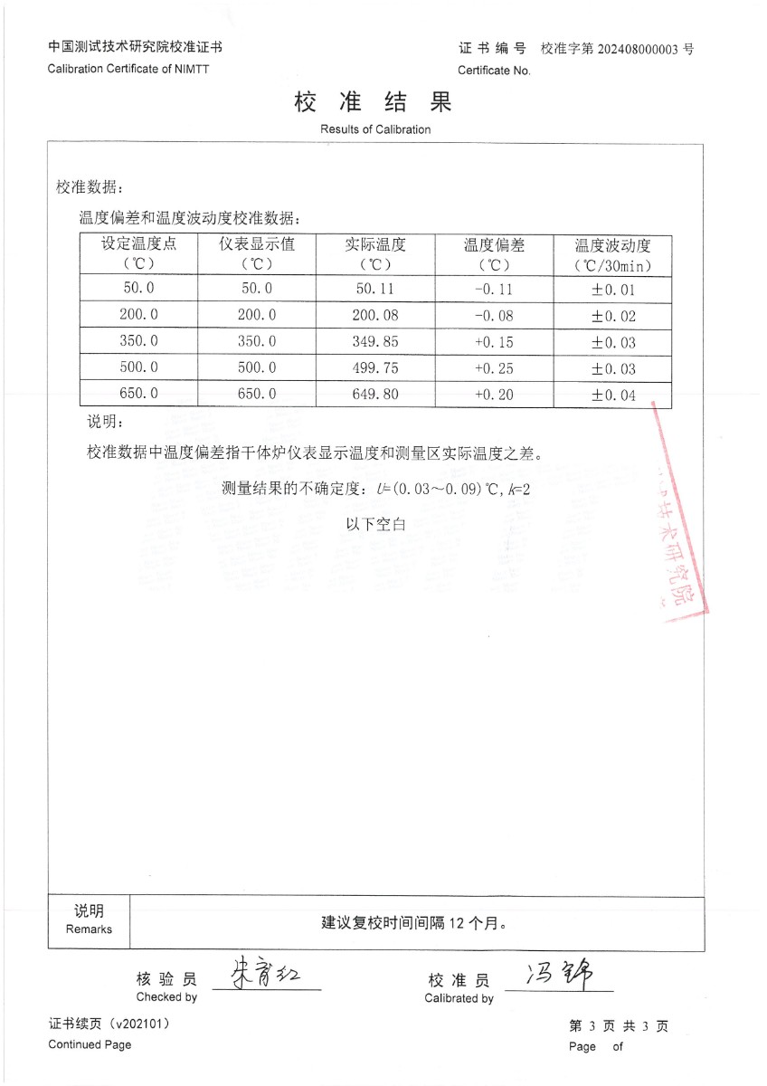 | 上一條:干體爐299(室溫+5℃~650℃)校準(zhǔn)證書 | 下一條:高精度制冷恒溫槽(-80~100℃)校準(zhǔn)證書 |