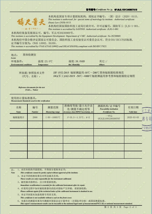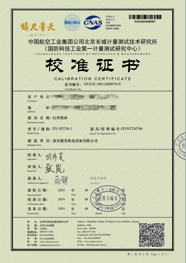 紅外黑體,室溫+5-300℃校準(zhǔn)證書 2024-8-29 本文被閱讀 8427 次