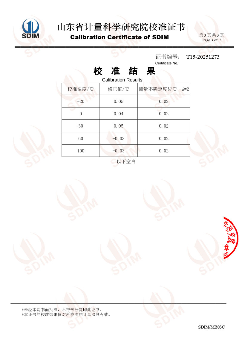 | 上一條:高精度熱管恒溫槽(50-300℃)校準(zhǔn)證書 | 下一條:高精度制冷恒溫槽(-80~100℃)校準(zhǔn)證書 |