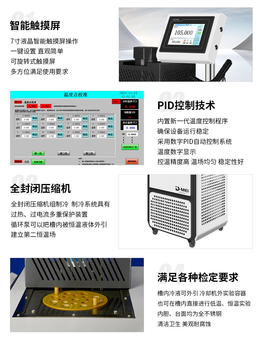 DY-RTS60制冷恒溫槽(-60℃-105℃)是高精度自控式溫度檢定設備,控溫精度高,溫場均勻,穩(wěn)定性好,操作方便,采用全封閉壓縮機制冷系統(tǒng),外殼和內(nèi)膽都采用全不銹鋼材料制造,產(chǎn)品供計量部門作一、二等標準水銀溫度計,貝克曼溫度計。工業(yè)鉑熱電阻,標準銅-康銅熱電偶檢定之用,也可作高精度熱、冷源供生產(chǎn)、科研使用。制冷恒溫槽是一種高精度自控式數(shù)顯溫度檢定裝置,它具有溫度穩(wěn)定性好,溫場均勻,控溫精度高等特點。制冷系統(tǒng)采用全封閉制冷機,具有噪音低、可靠性好、壽命長。數(shù)顯溫控儀按PID調節(jié)規(guī)律實現(xiàn)溫度自動控制,結構緊湊、操作方便、槽溫讀數(shù)直觀。適用于各計量、生化、石油、氣象、能源、環(huán)保、醫(yī)藥等部門及生產(chǎn)溫度計、控溫器等廠家進行物理參數(shù)的檢測,并可為其他實驗研究工作提供恒溫源。