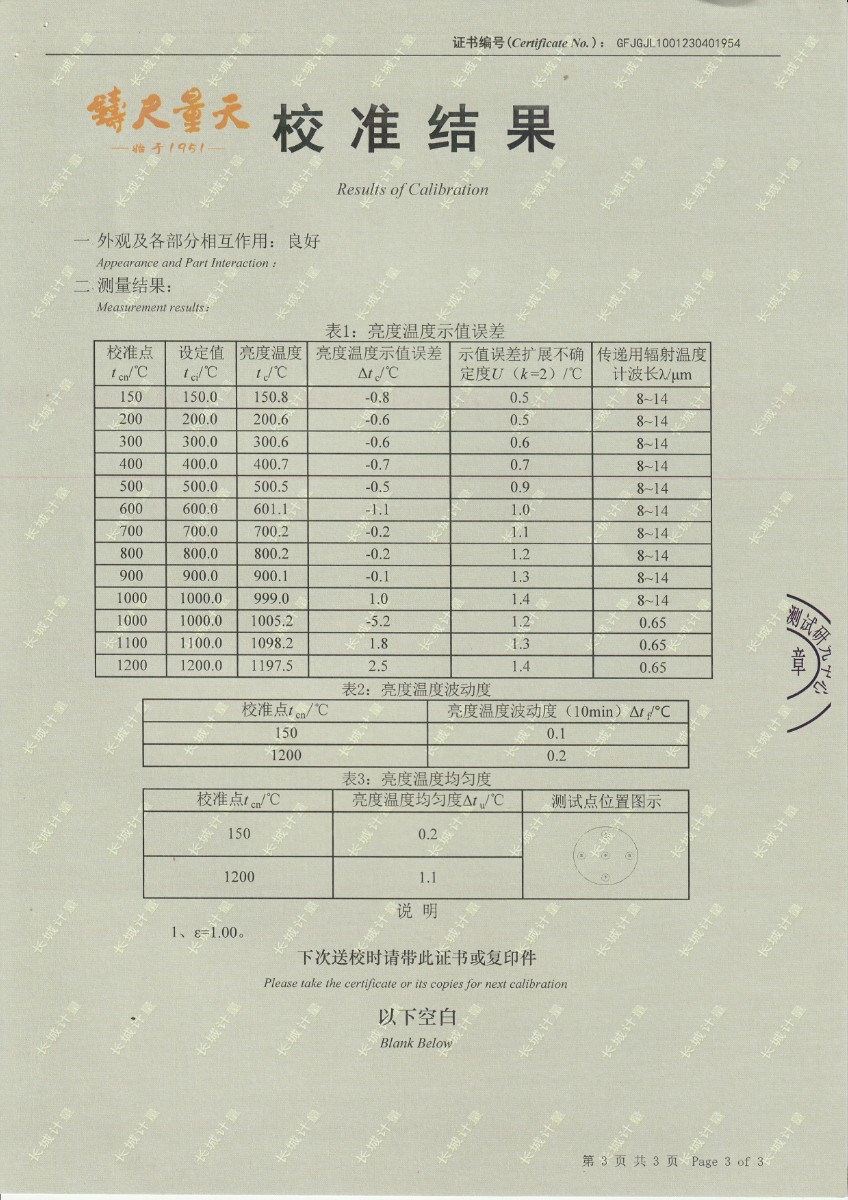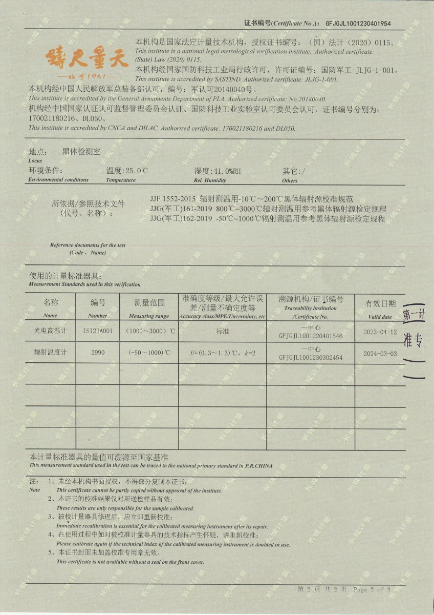 | 上一條:中航工程集成設(shè)備有限公司 黑體輻射源 校準(zhǔn)證書 (1) | 下一條:高精度制冷恒溫槽(-80~100℃)校準(zhǔn)證書 |