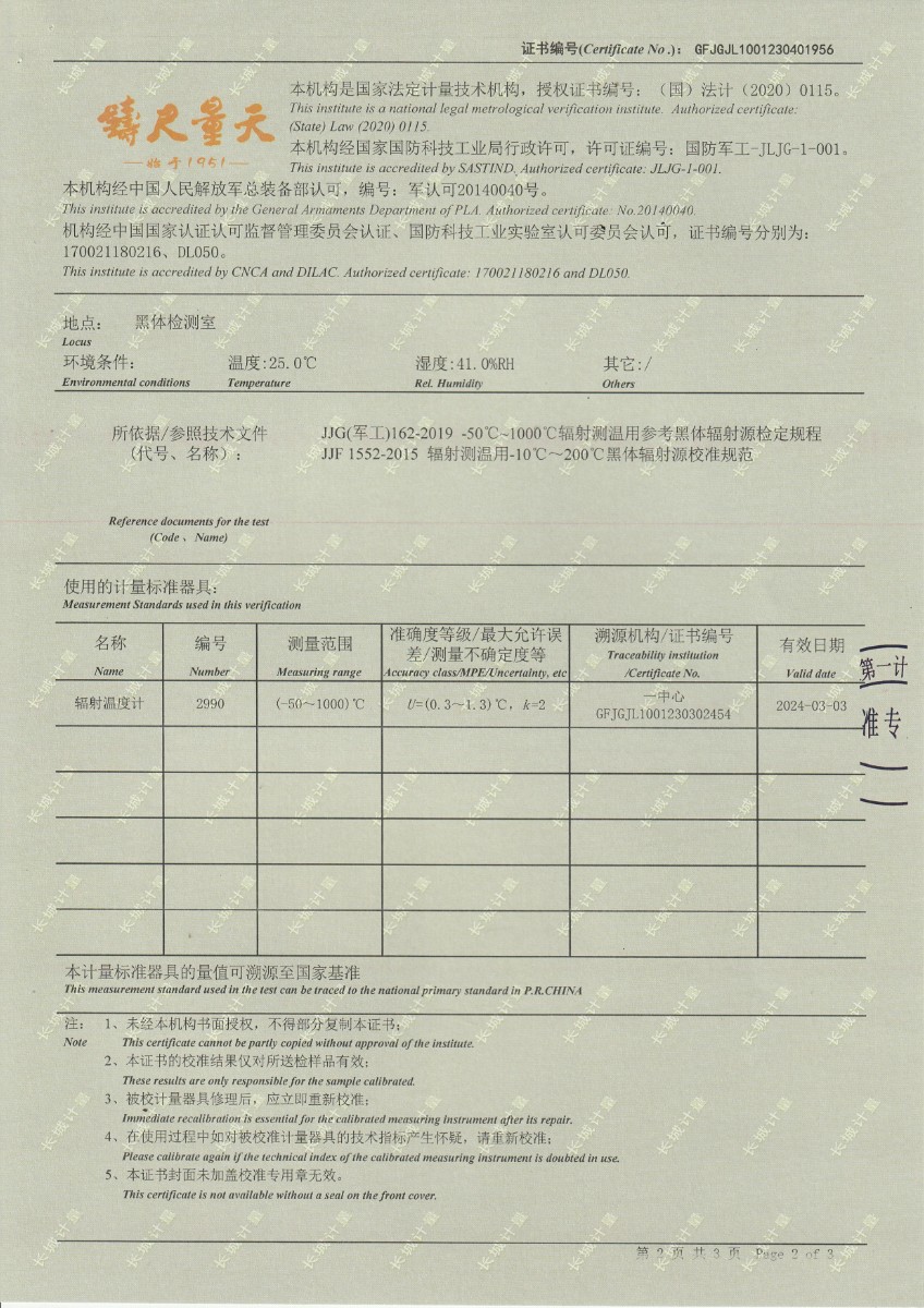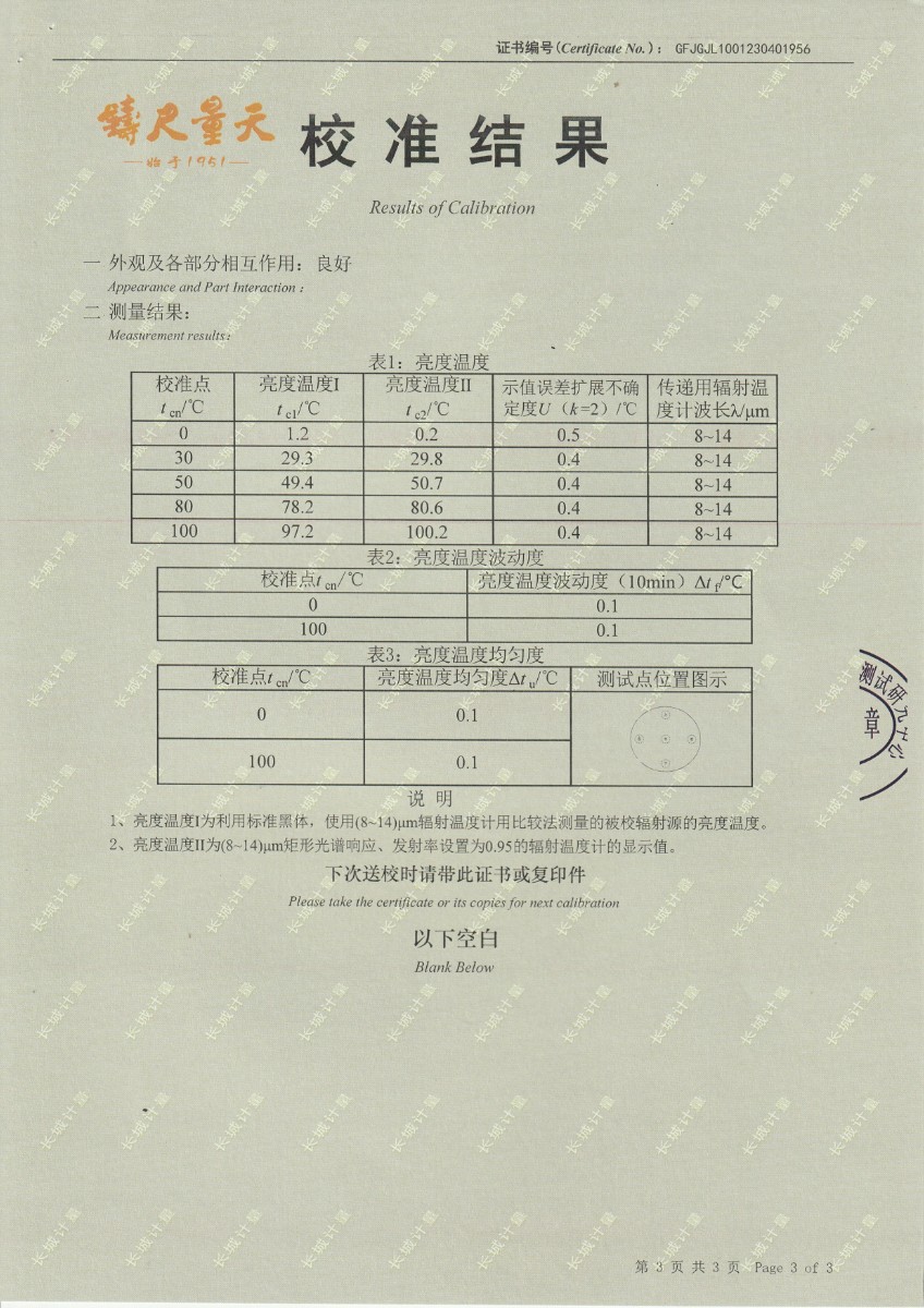 上一條:中航工程集成設備有限公司 黑體輻射源 校準證書 (2)下一條:高精度制冷恒溫槽(-80~100℃)校準證書