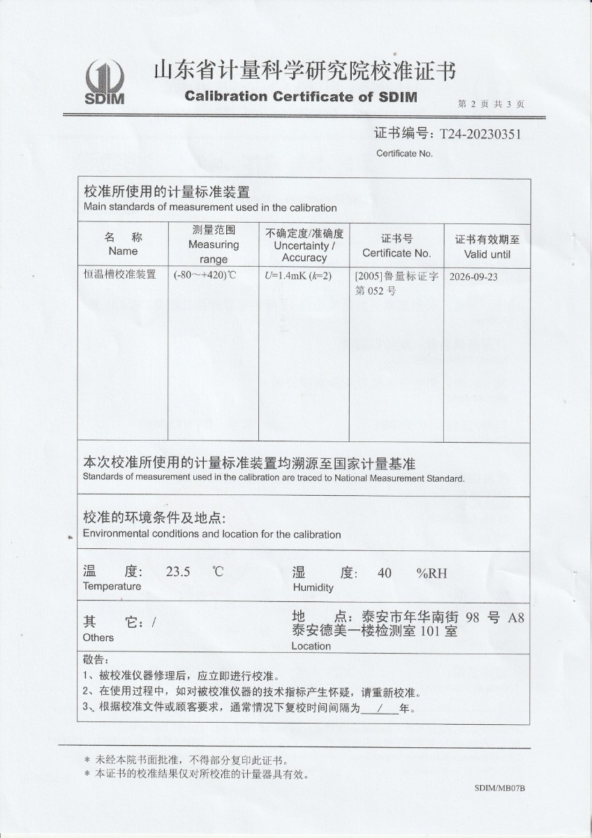 | 上一條:中國科學(xué)院上海技術(shù)物理研究所-通用測(cè)試平臺(tái)熱源部件(DYHTM546) | 下一條:高精度制冷恒溫槽(-80~100℃)校準(zhǔn)證書 |