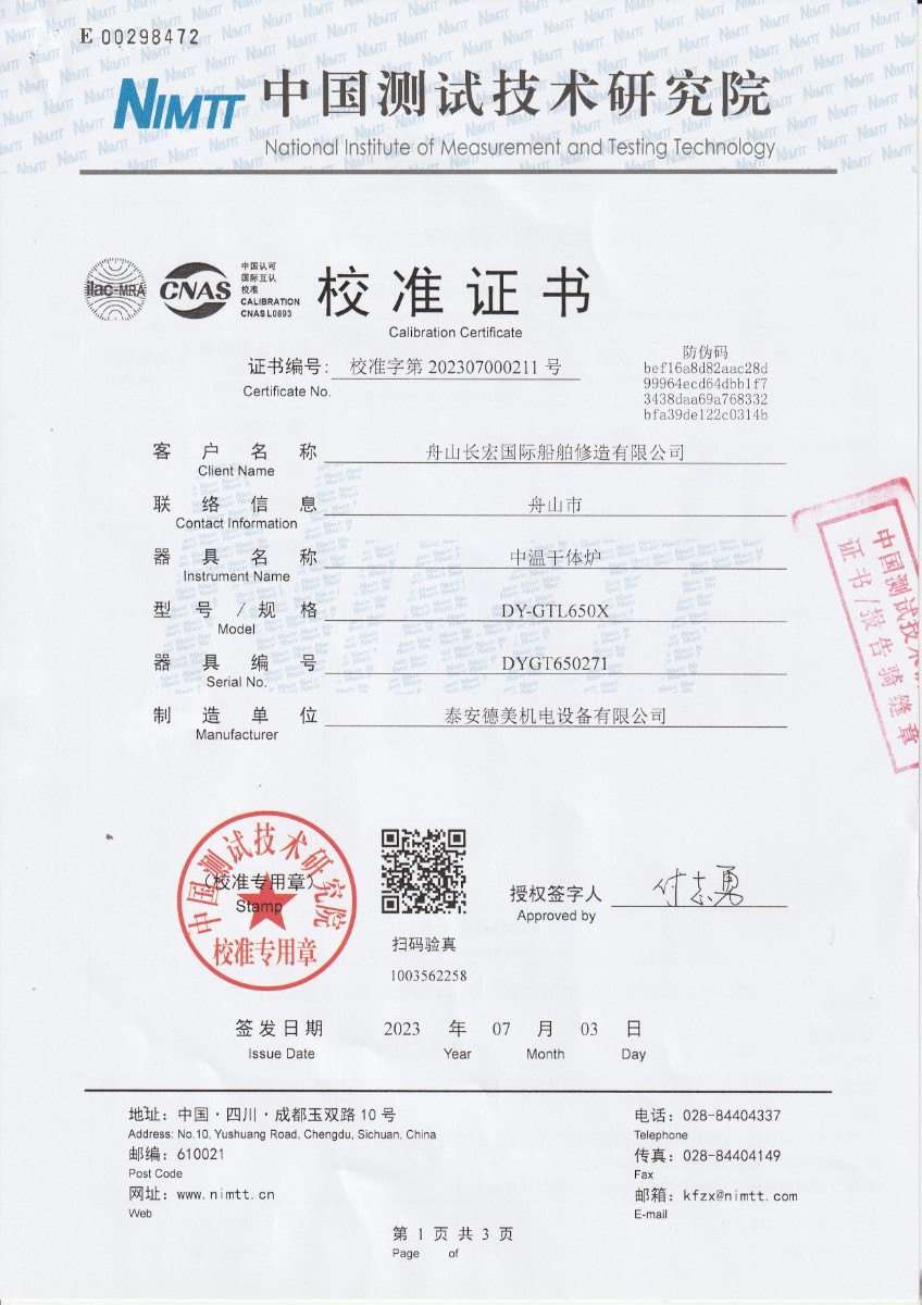 舟山長宏國際船舶修造有限公司-中溫干體爐 2023-7-13 本文被閱讀 12568 次