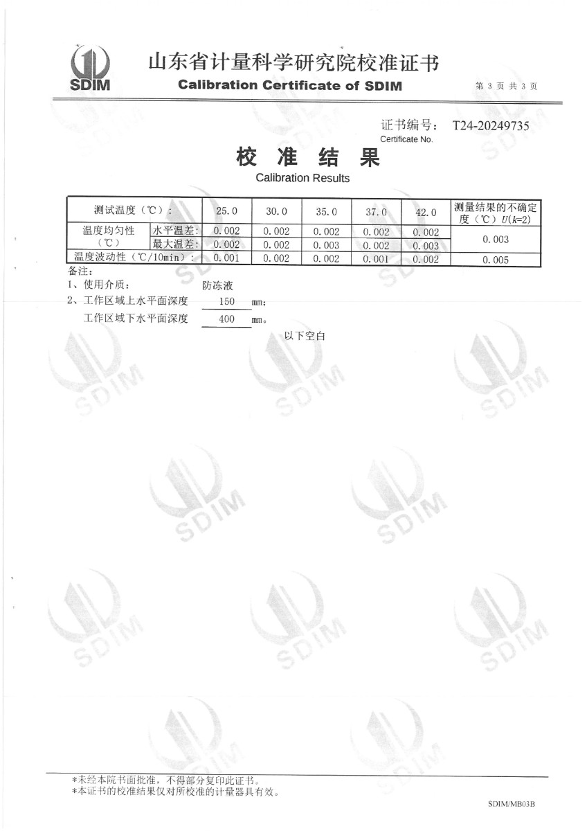 體溫計(jì)專用黑體恒溫槽(-20~100℃)校準(zhǔn)證書