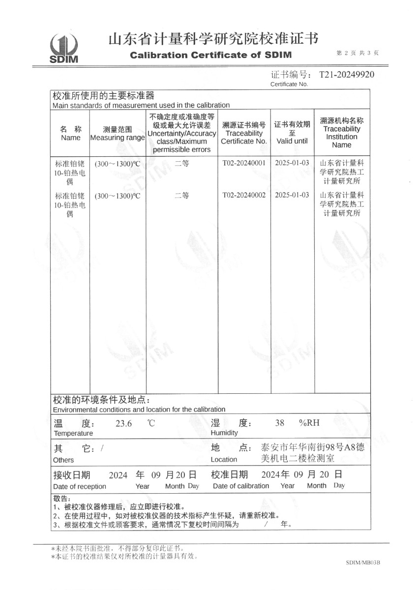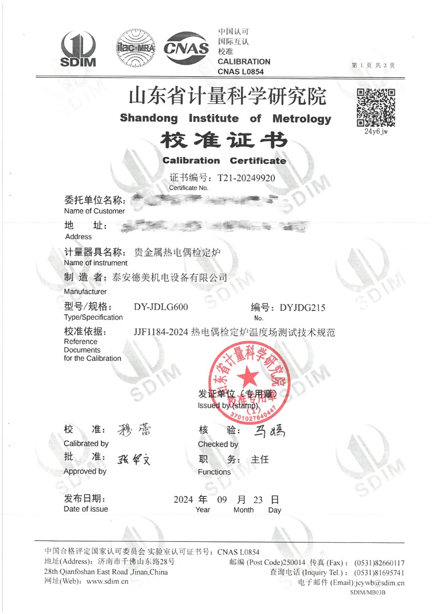 貴金屬熱電偶檢定爐(300~1000℃)校準(zhǔn)證書 2024-9-24 本文被閱讀 6902 次