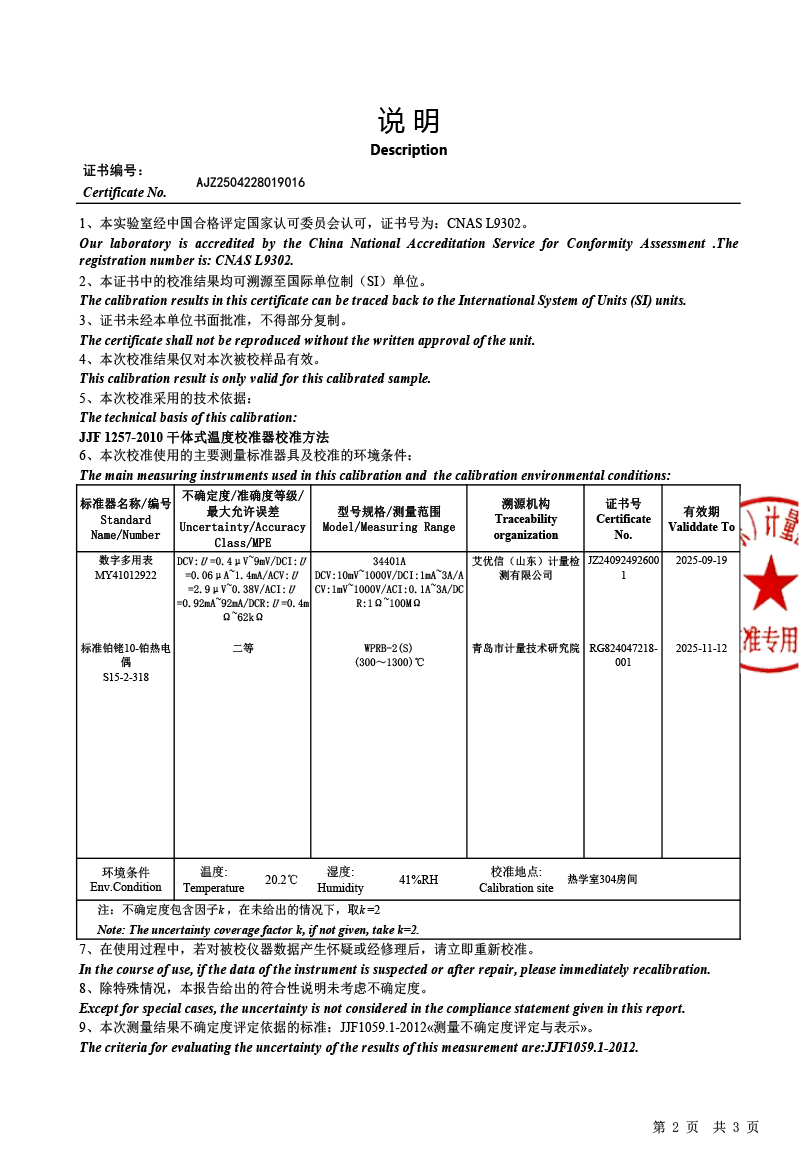 | 上一條:高精度數(shù)字溫度計(jì)(-50-450℃)校準(zhǔn)證書 | 下一條:高精度制冷恒溫槽(-80~100℃)校準(zhǔn)證書 |