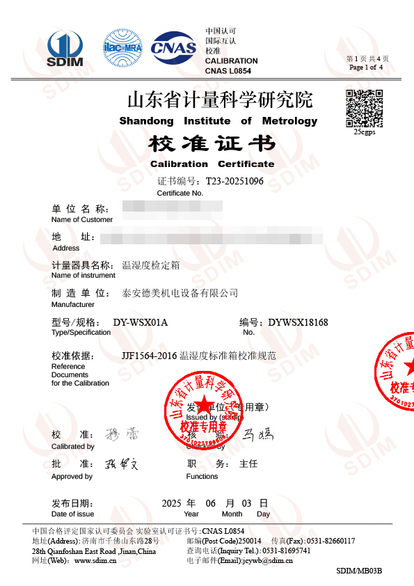 溫濕度檢定箱(-20-65℃)校準證書 2025-6-5 本文被閱讀 3911 次