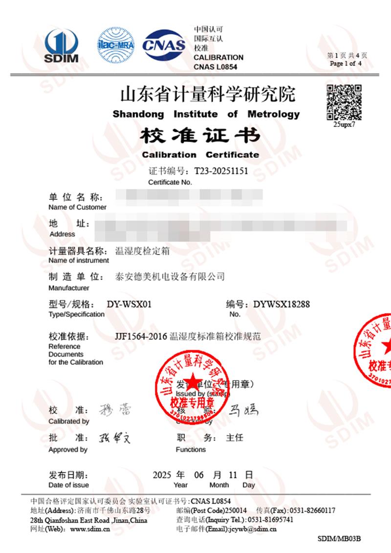 | 上一條:溫濕度檢定箱(-20-65℃)校準(zhǔn)證書 | 下一條:高精度制冷恒溫槽(-80~100℃)校準(zhǔn)證書 |