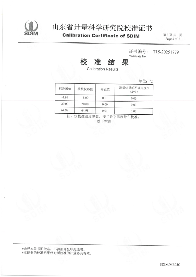 | 上一條: DY-HT1D-100C超低溫黑體輻射源 | 下一條:高精度制冷恒溫槽(-80~100℃)校準(zhǔn)證書 |