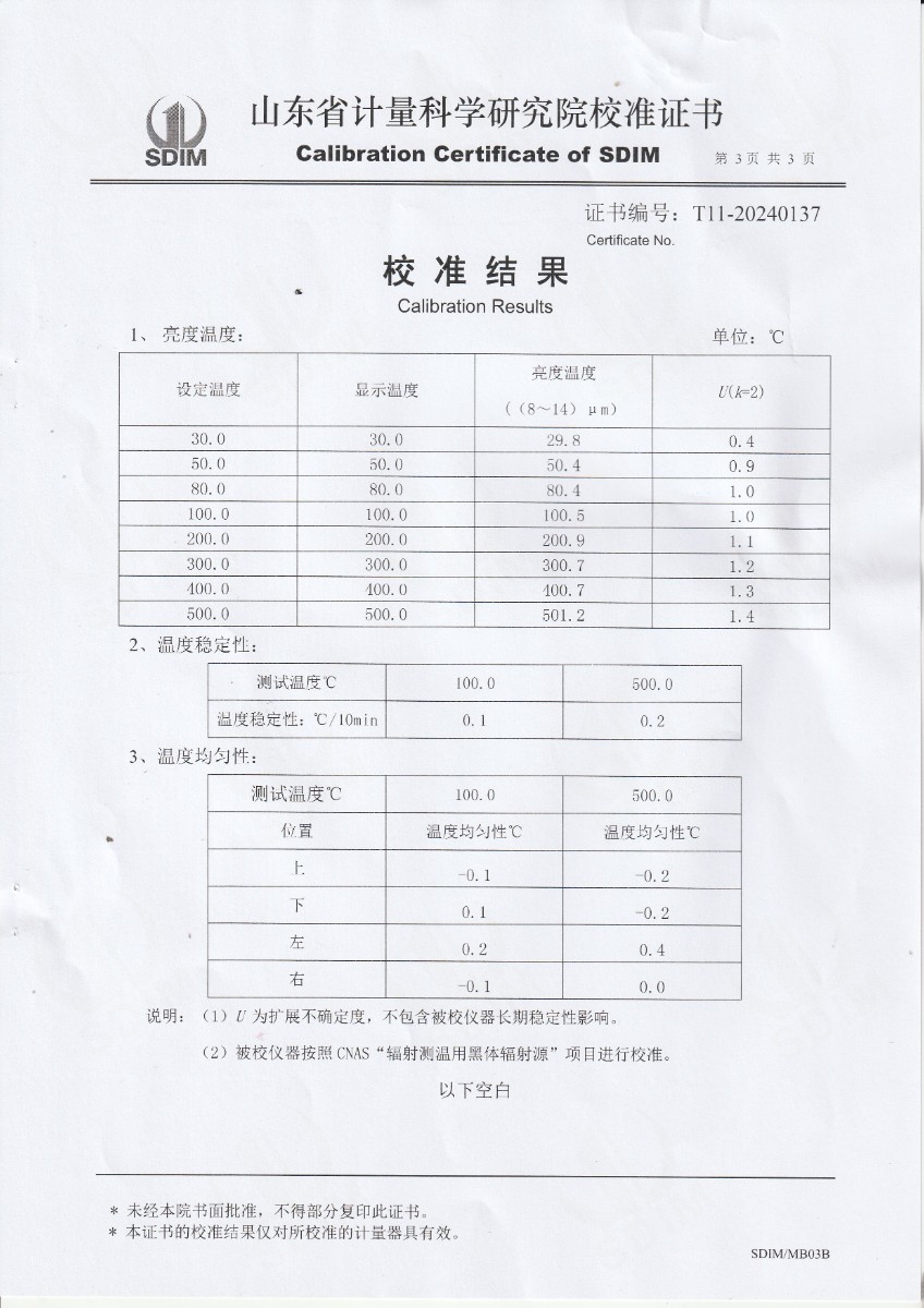 面源黑體爐校準(zhǔn)證書(shū) 2024-3-27 本文被閱讀 6660 次