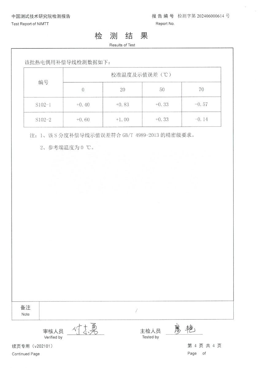 | 上一條:補(bǔ)償導(dǎo)線K分度校準(zhǔn)證書(shū) | 下一條:高精度制冷恒溫槽(-80~100℃)校準(zhǔn)證書(shū) |