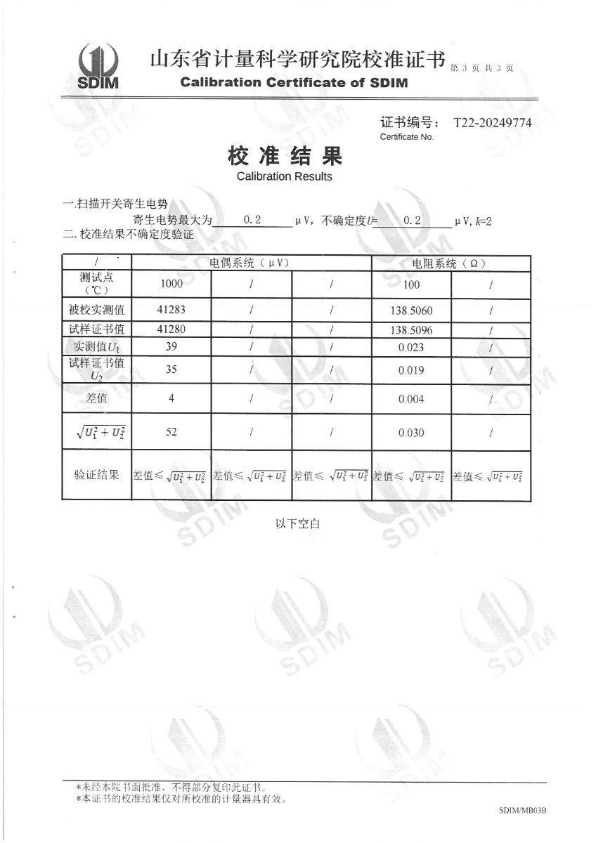 | 上一條:中溫干體爐296(50~650℃)校準(zhǔn)證書 | 下一條:高精度制冷恒溫槽(-80~100℃)校準(zhǔn)證書 |