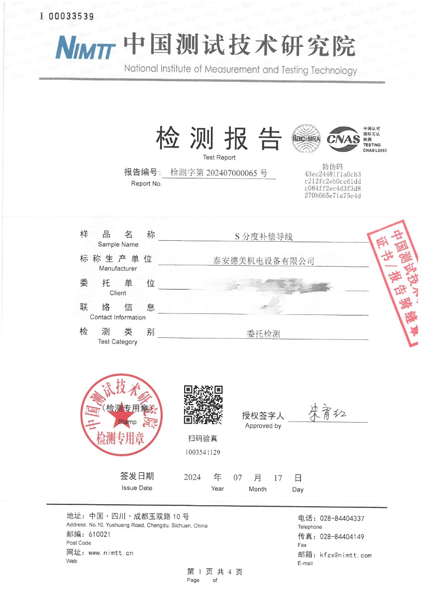 | 上一條:熱電偶用補(bǔ)償導(dǎo)線K分度校準(zhǔn)證書 | 下一條:高精度制冷恒溫槽(-80~100℃)校準(zhǔn)證書 |