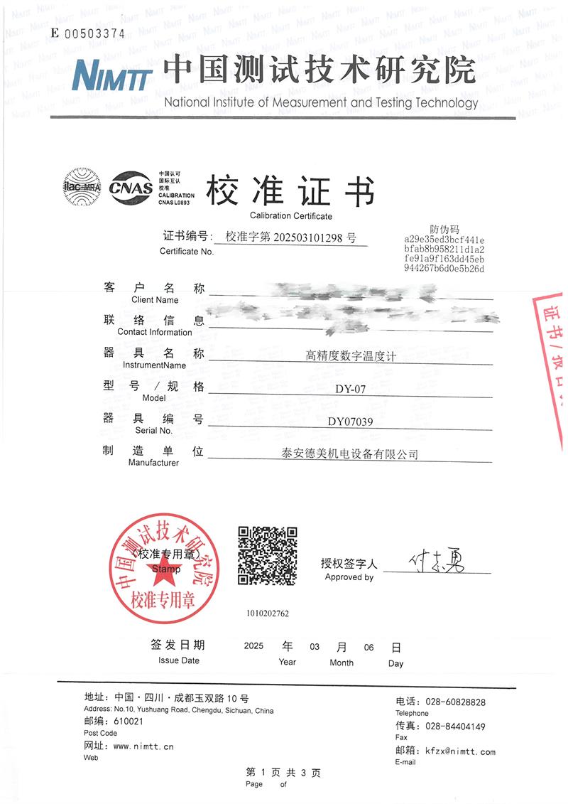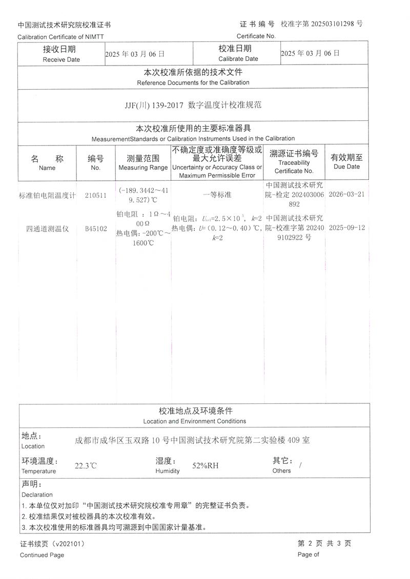 | 上一條:露點儀檢定、校準(zhǔn)證書 | 下一條:高精度制冷恒溫槽(-80~100℃)校準(zhǔn)證書 |