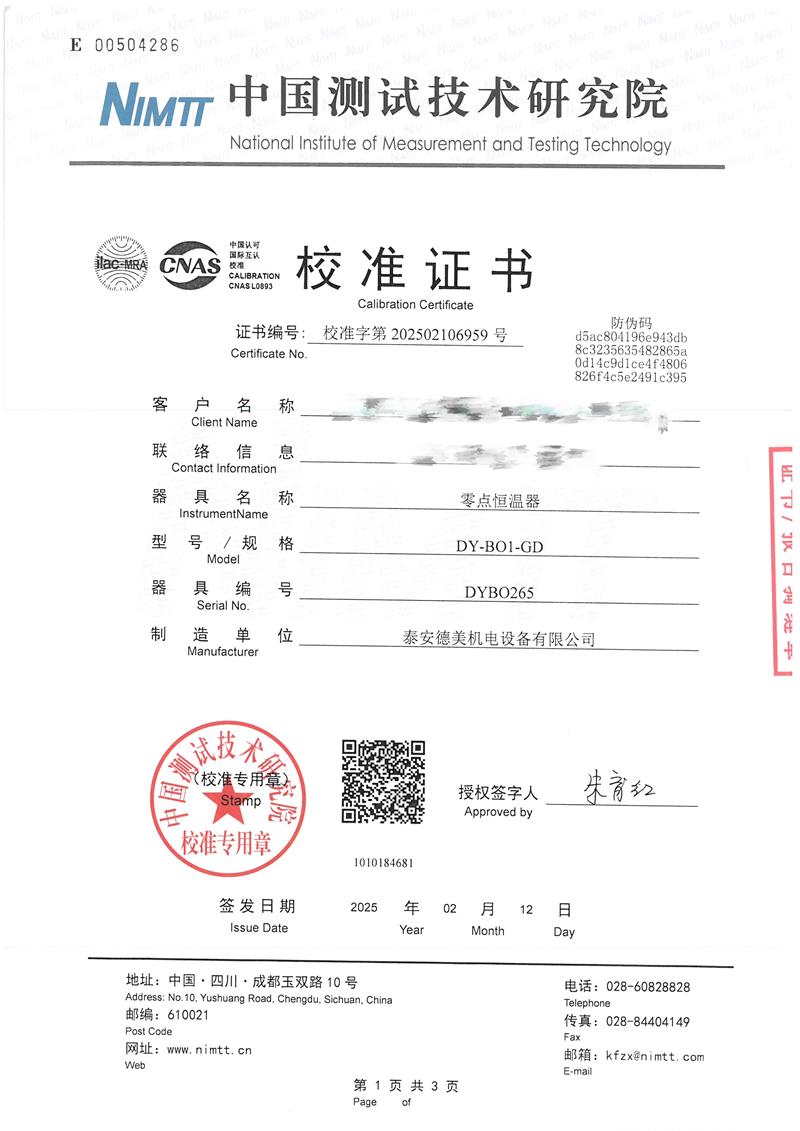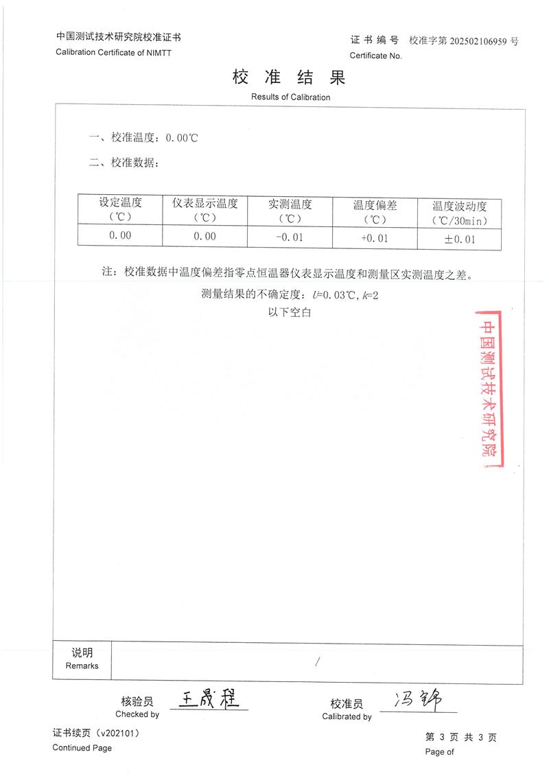 | 上一條:高精度數(shù)字溫度計(-80~300℃)校準(zhǔn)證書 | 下一條:高精度制冷恒溫槽(-80~100℃)校準(zhǔn)證書 |