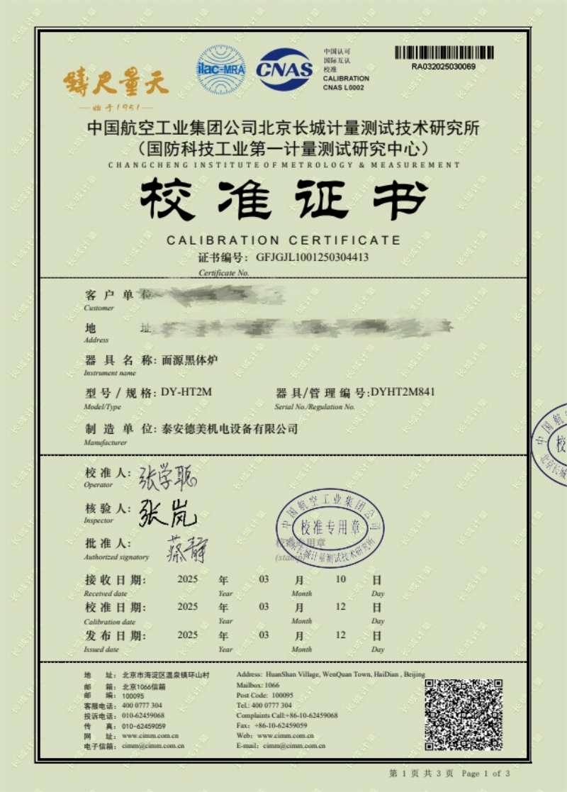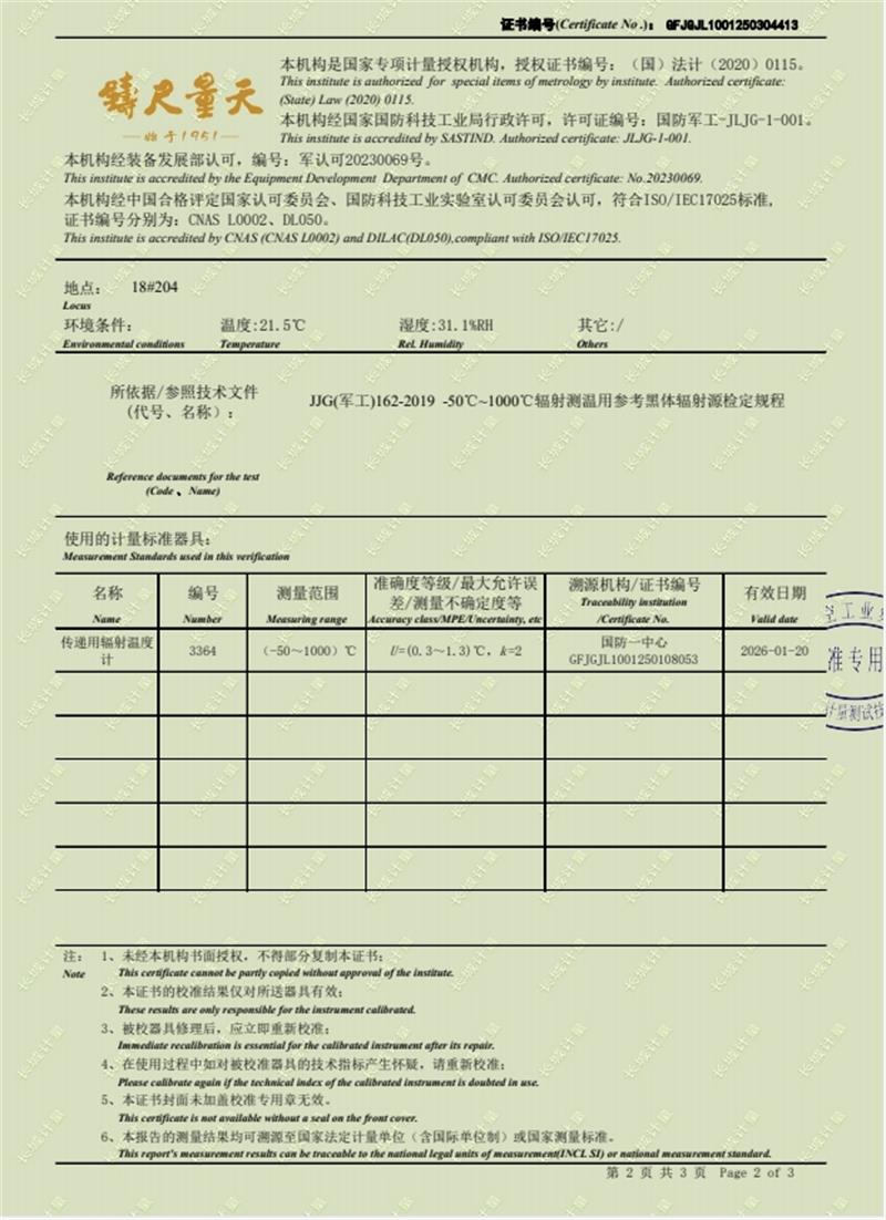面源黑體爐(室溫+5-500℃)校準證書 2025-3-15 本文被閱讀 5670 次