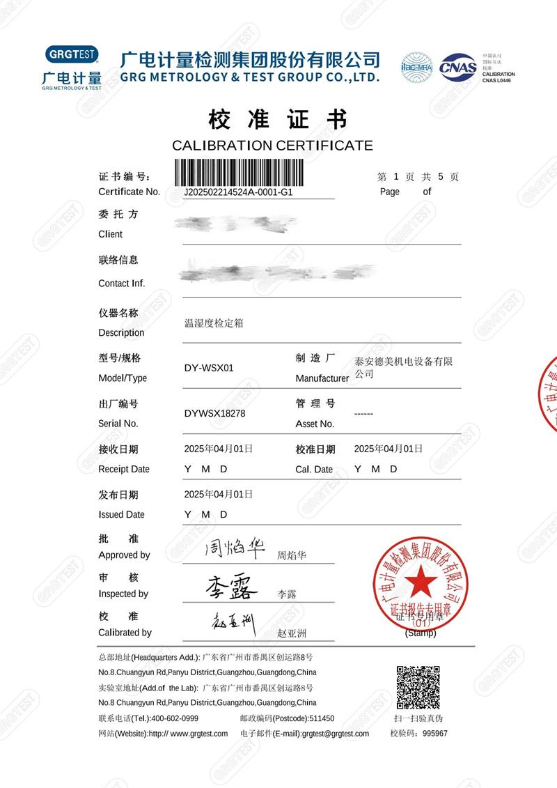 溫濕度檢定箱18278(-5~65℃)校準證書 2025-4-18 本文被閱讀 3585 次
