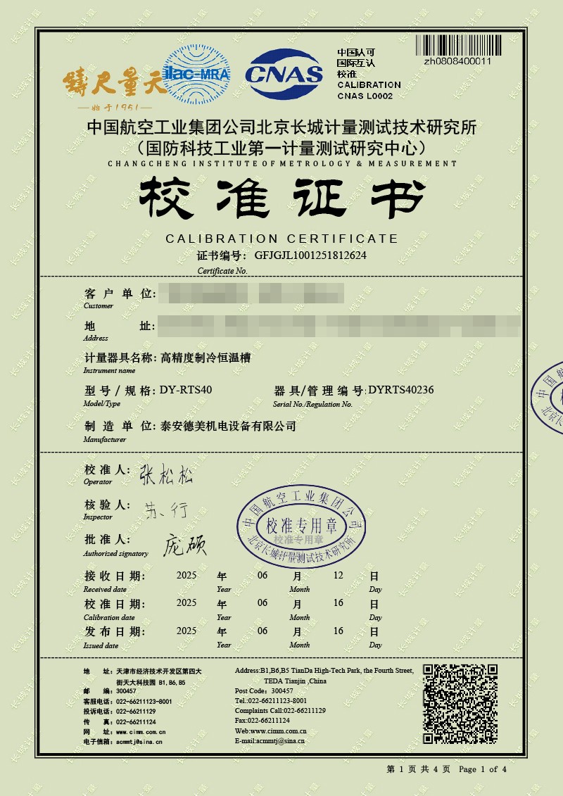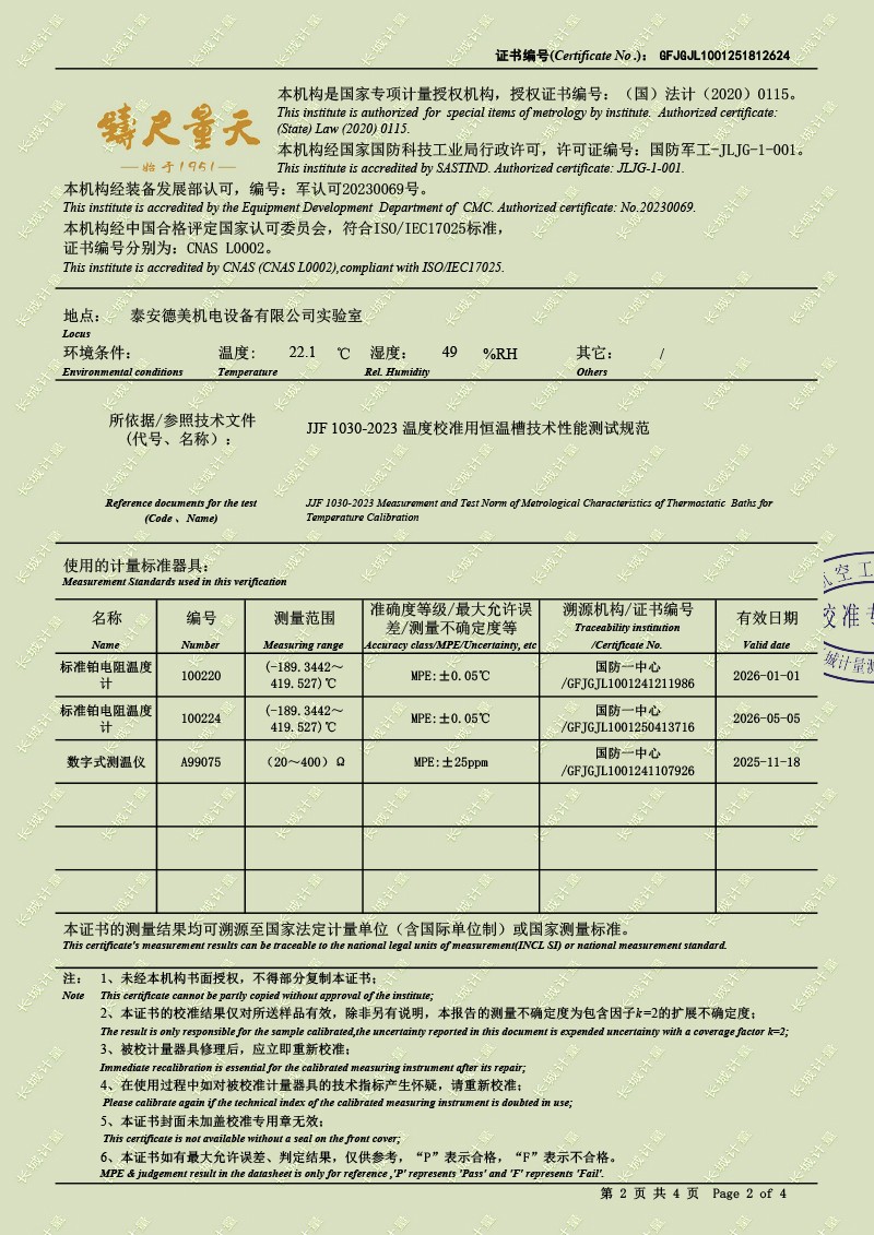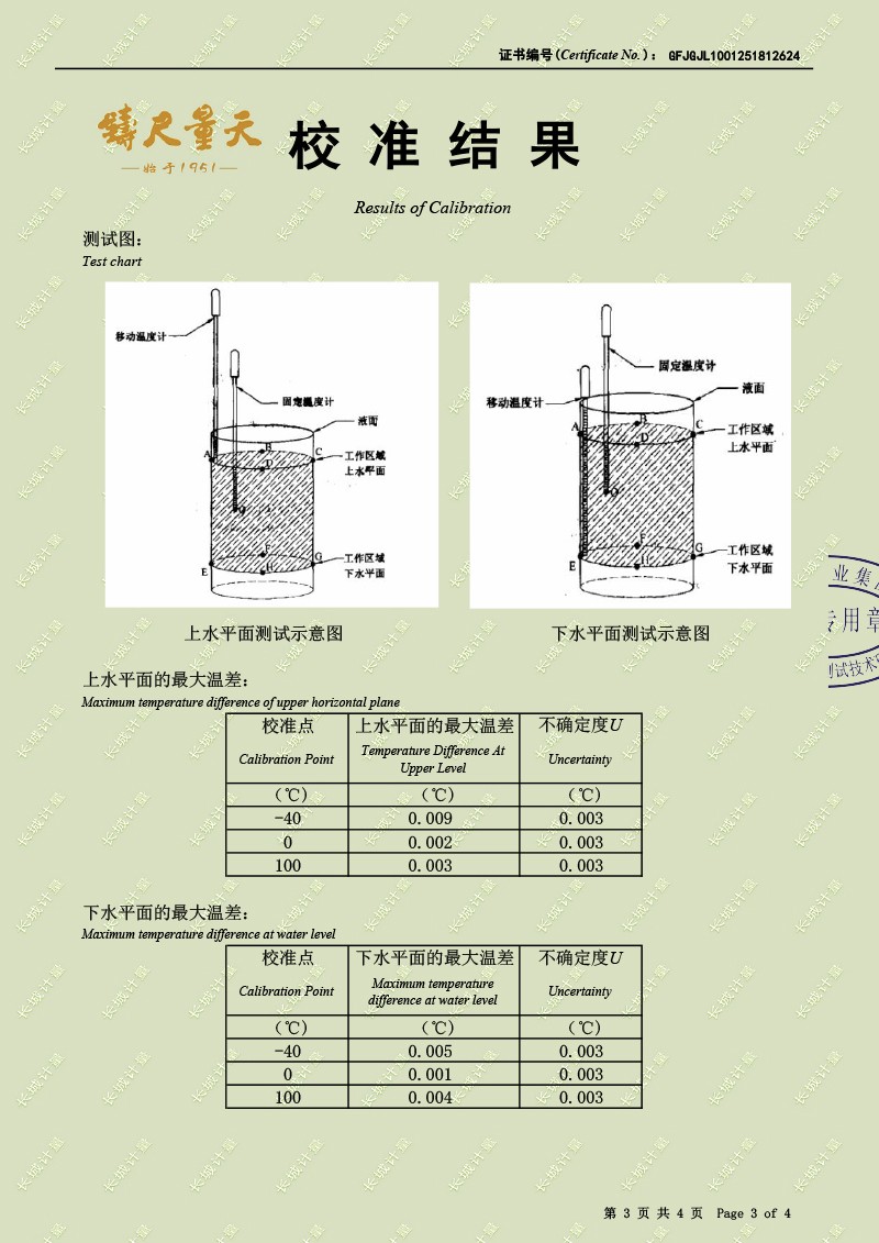 | 上一條:DY-WSH150 高精度恒溫恒濕試驗箱(-40℃~+150℃/20%~95%RH@20℃) | 下一條:高精度制冷恒溫槽(-80~100℃)校準(zhǔn)證書 |