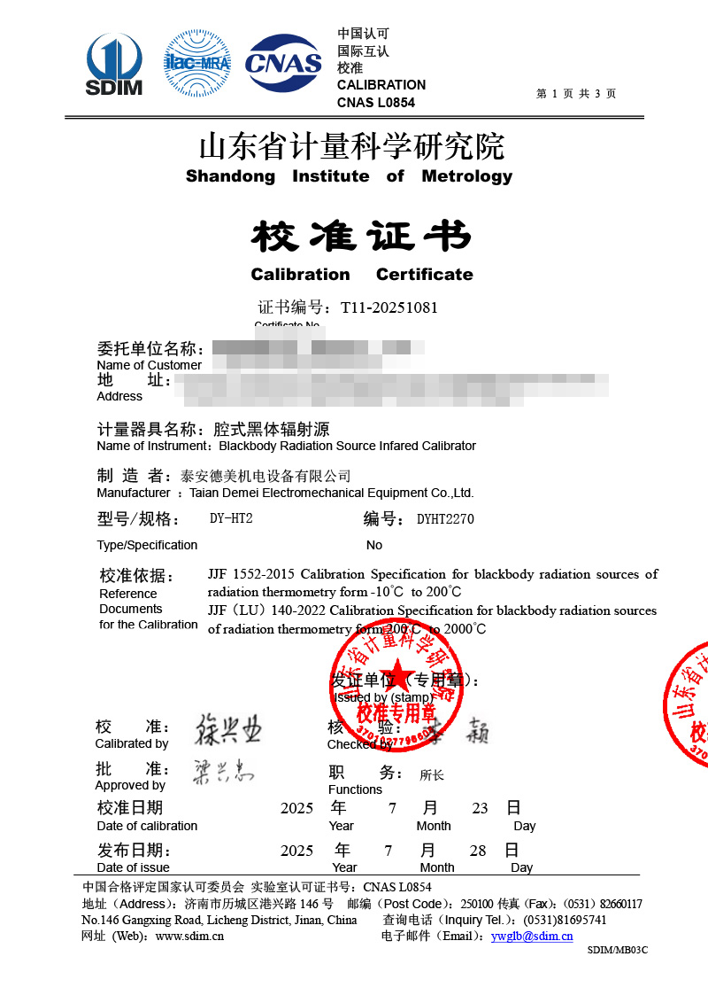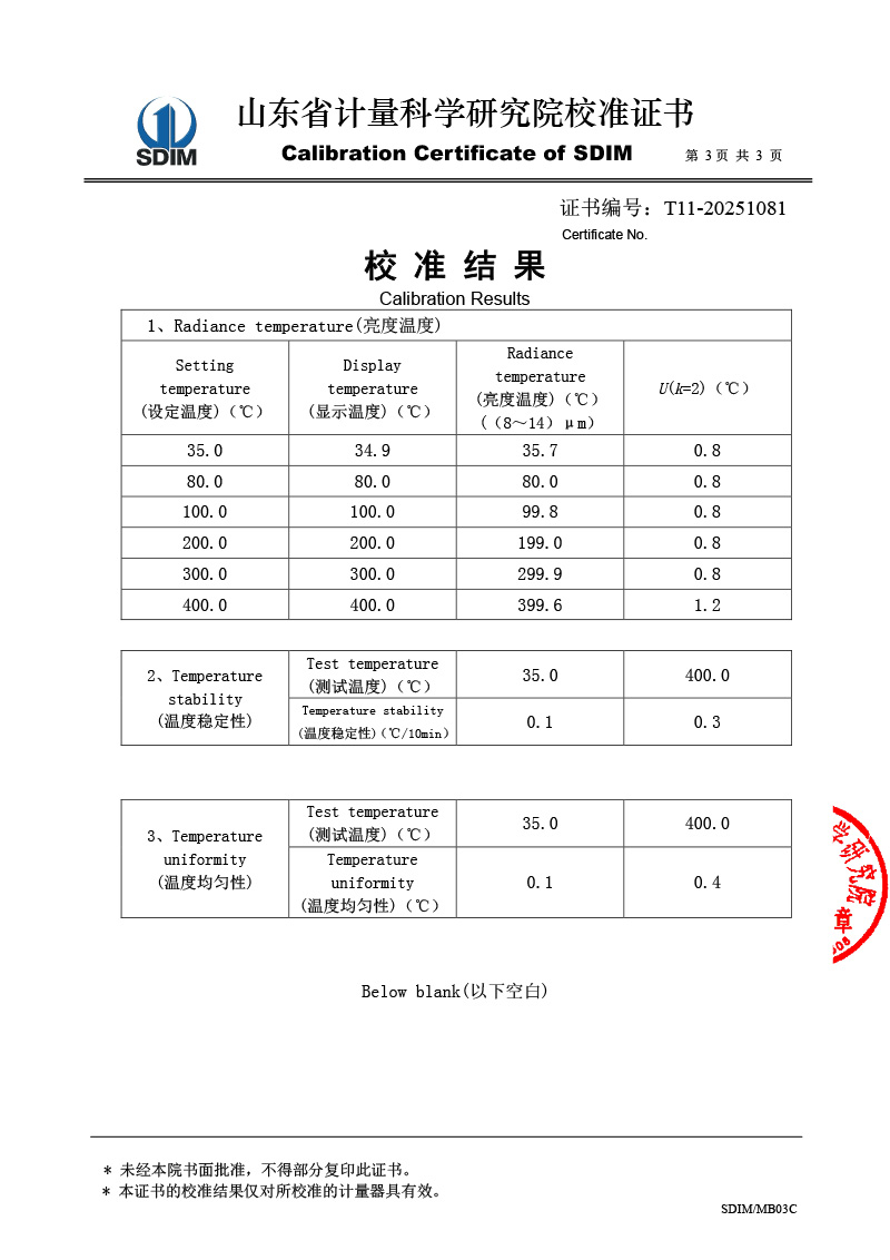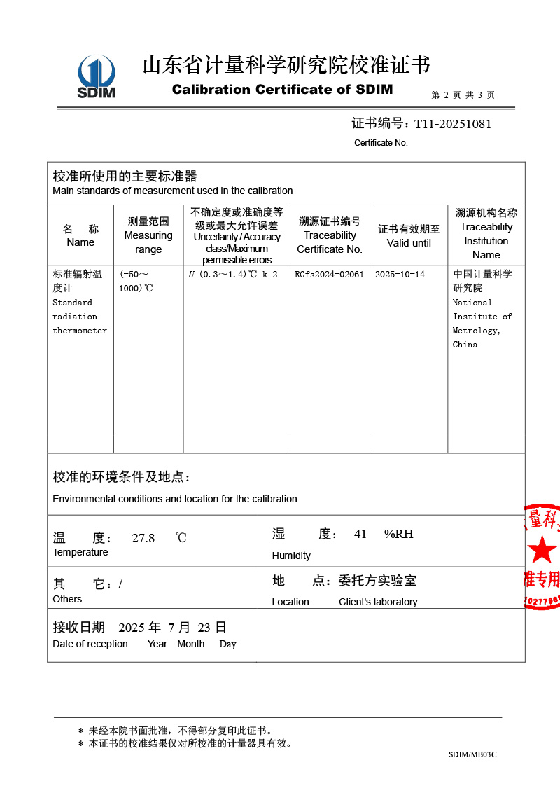 腔式黑體輻射源(室溫+5-400℃)校準證書 2025-7-29 本文被閱讀 2641 次