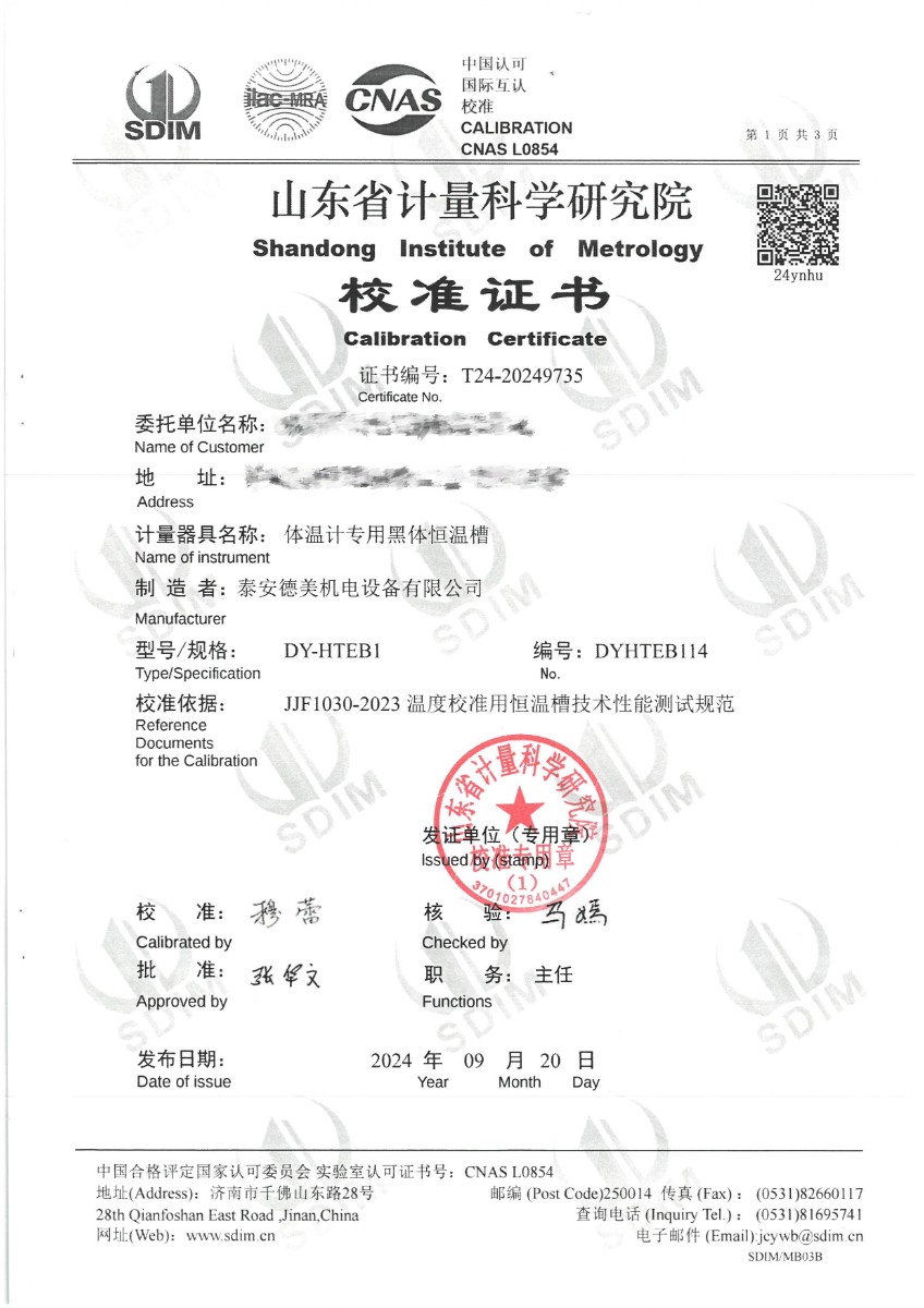 | 上一條:DY-HTY便攜式體溫專用黑體爐(30℃~45℃) | 下一條:高精度制冷恒溫槽(-80~100℃)校準(zhǔn)證書 |