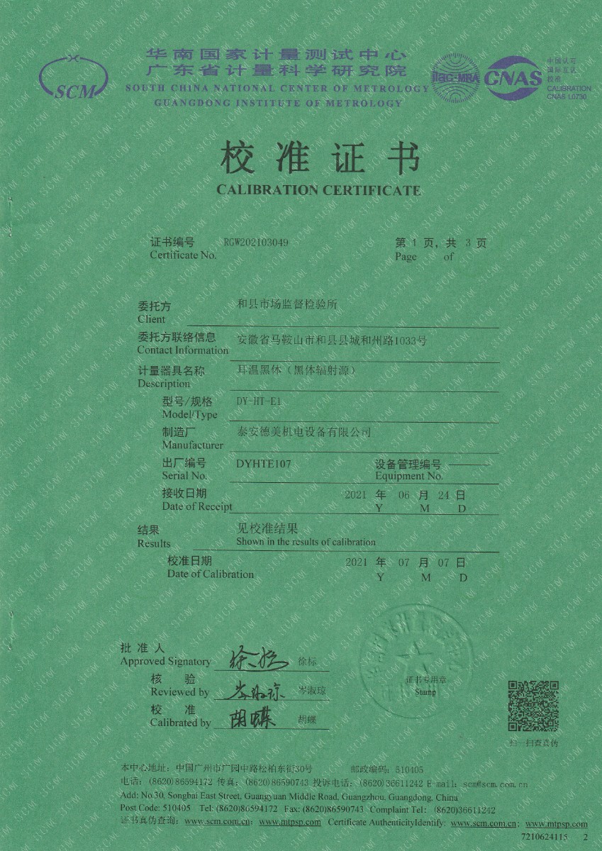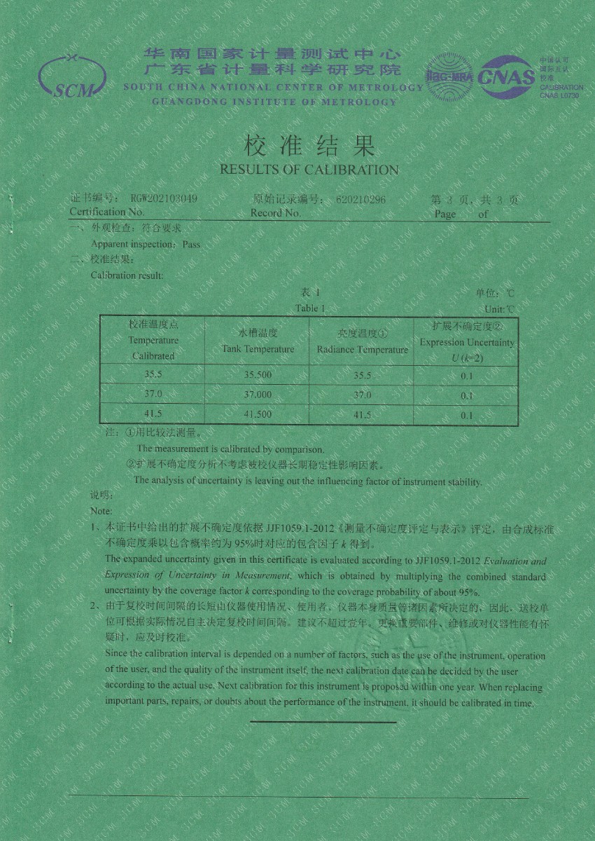 | 上一條:廣東省連平縣質(zhì)量技術(shù)監(jiān)督檢測(cè)所數(shù)字式溫度計(jì) | 下一條:高精度制冷恒溫槽(-80~100℃)校準(zhǔn)證書 |