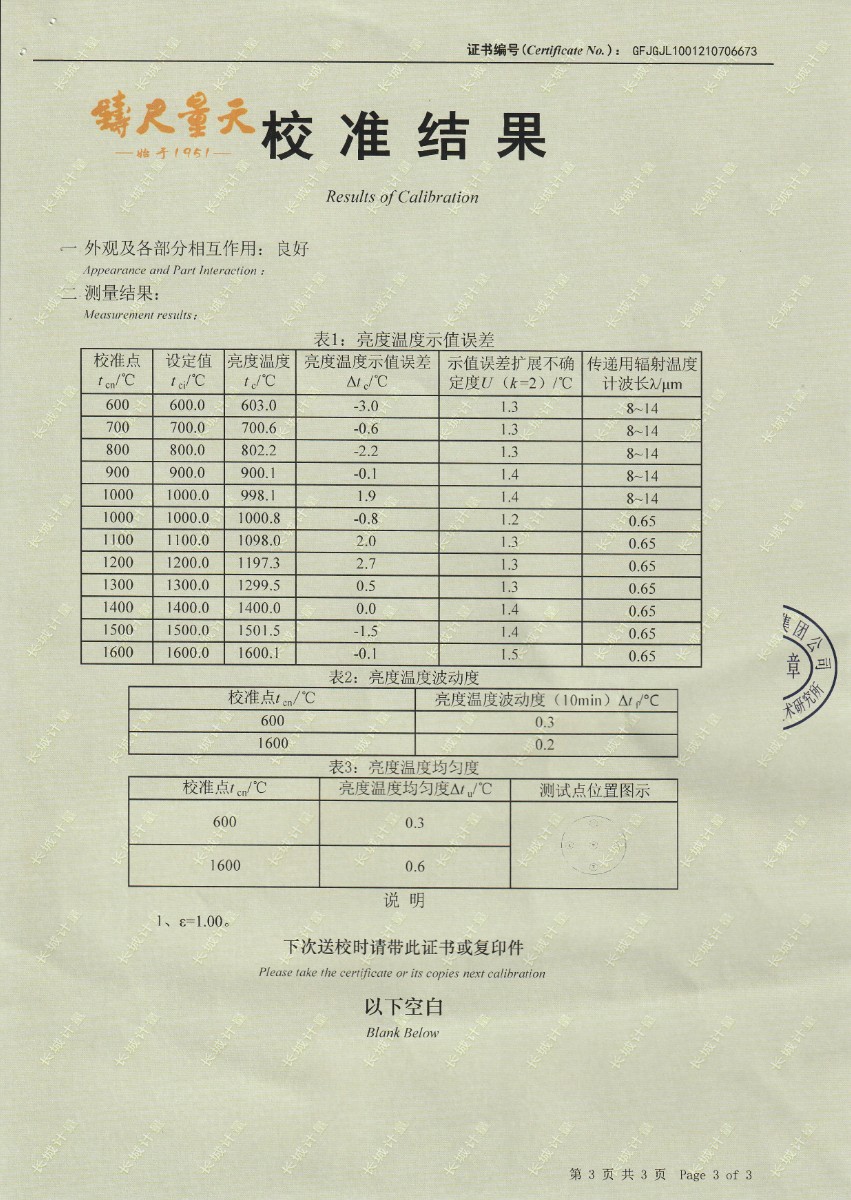 | 上一條:福建邁格林醫(yī)療科技有限公司-黑體輻射源 | 下一條:高精度制冷恒溫槽(-80~100℃)校準(zhǔn)證書 |