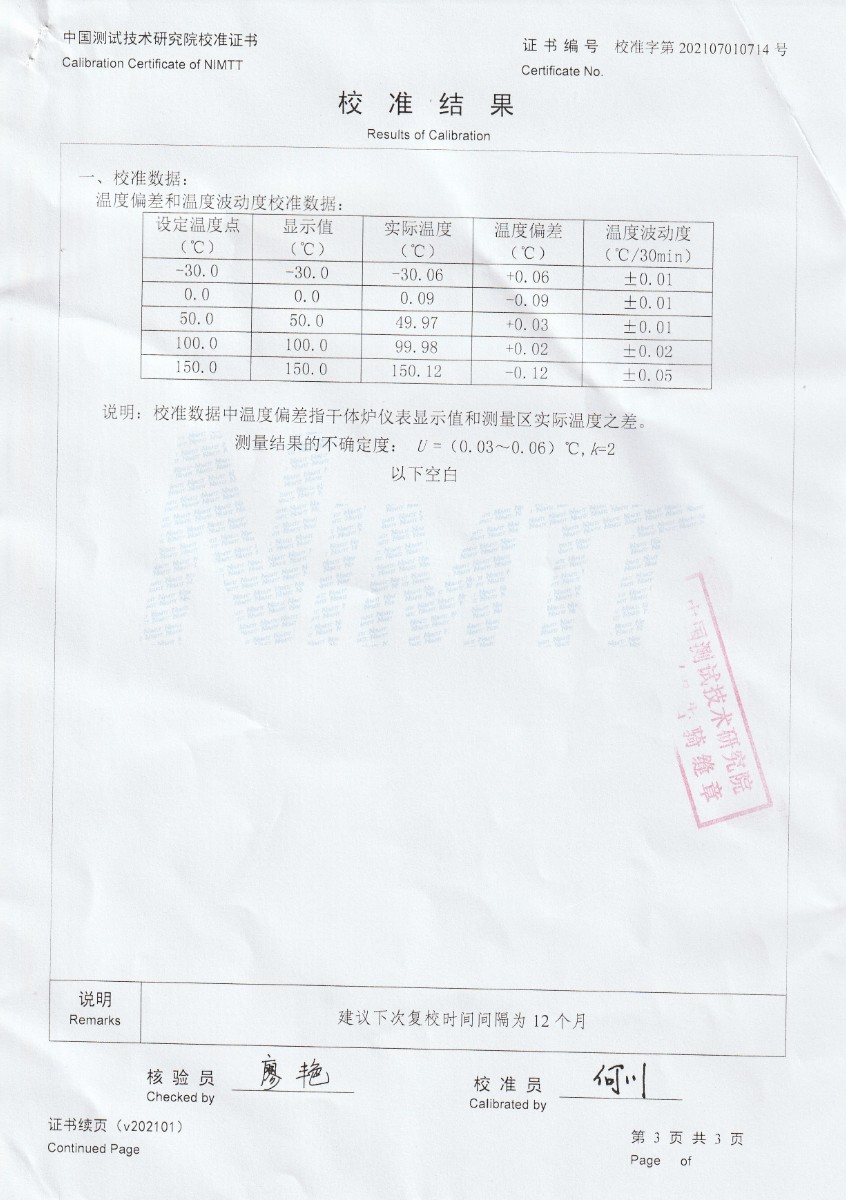 上一條:深圳村田科技有限公司-溫濕度檢定箱下一條:高精度制冷恒溫槽(-80~100℃)校準(zhǔn)證書