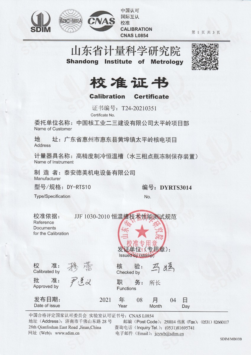 上一條:中國核工業(yè)二三建設(shè)有限公司太平嶺項目部-熱電偶檢定爐下一條:高精度制冷恒溫槽(-80~100℃)校準證書