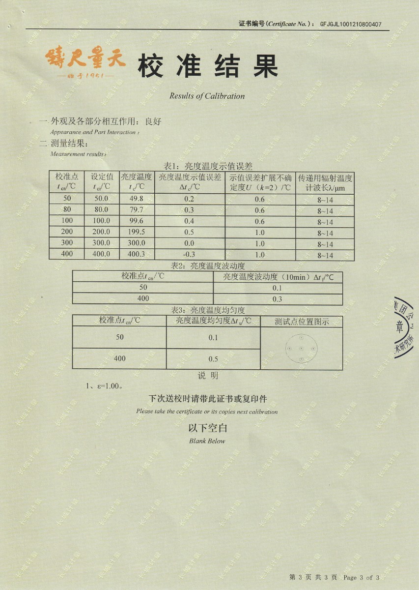 | 上一條:迪皮埃風(fēng)電葉片揚州有限公司-面源黑體輻射源 | 下一條:高精度制冷恒溫槽(-80~100℃)校準(zhǔn)證書 |