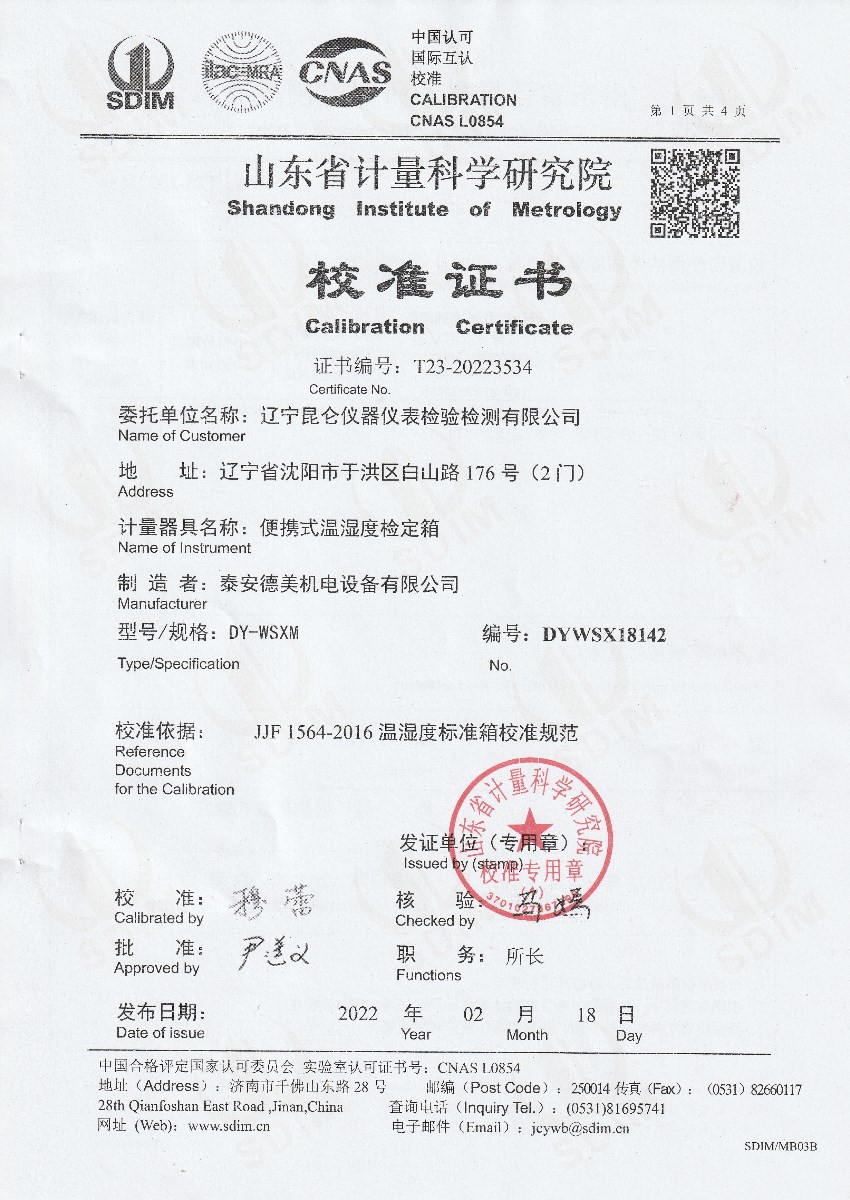 | 上一條:河北京車軌道交通車輛裝備有限公司-制冷恒溫槽 | 下一條:高精度制冷恒溫槽(-80~100℃)校準(zhǔn)證書 |