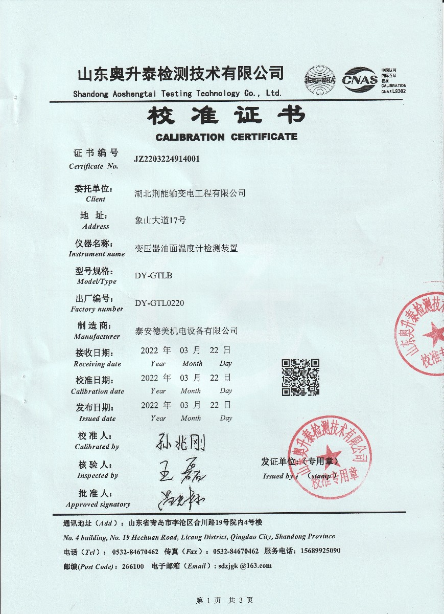 湖北荊能輸變電工程有限公司-變壓器油面溫度計檢測裝置 2022-3-28 本文被閱讀 16600 次