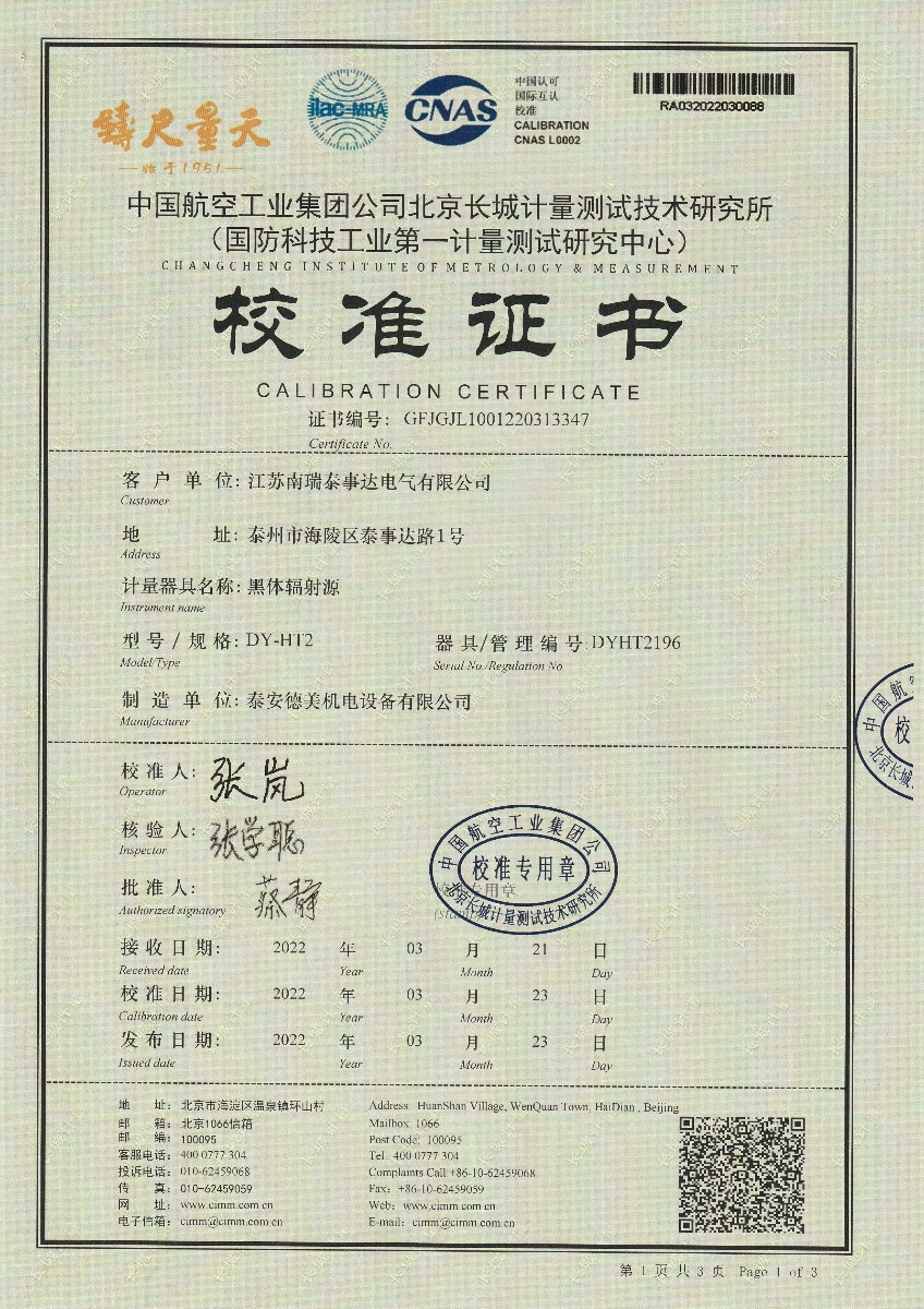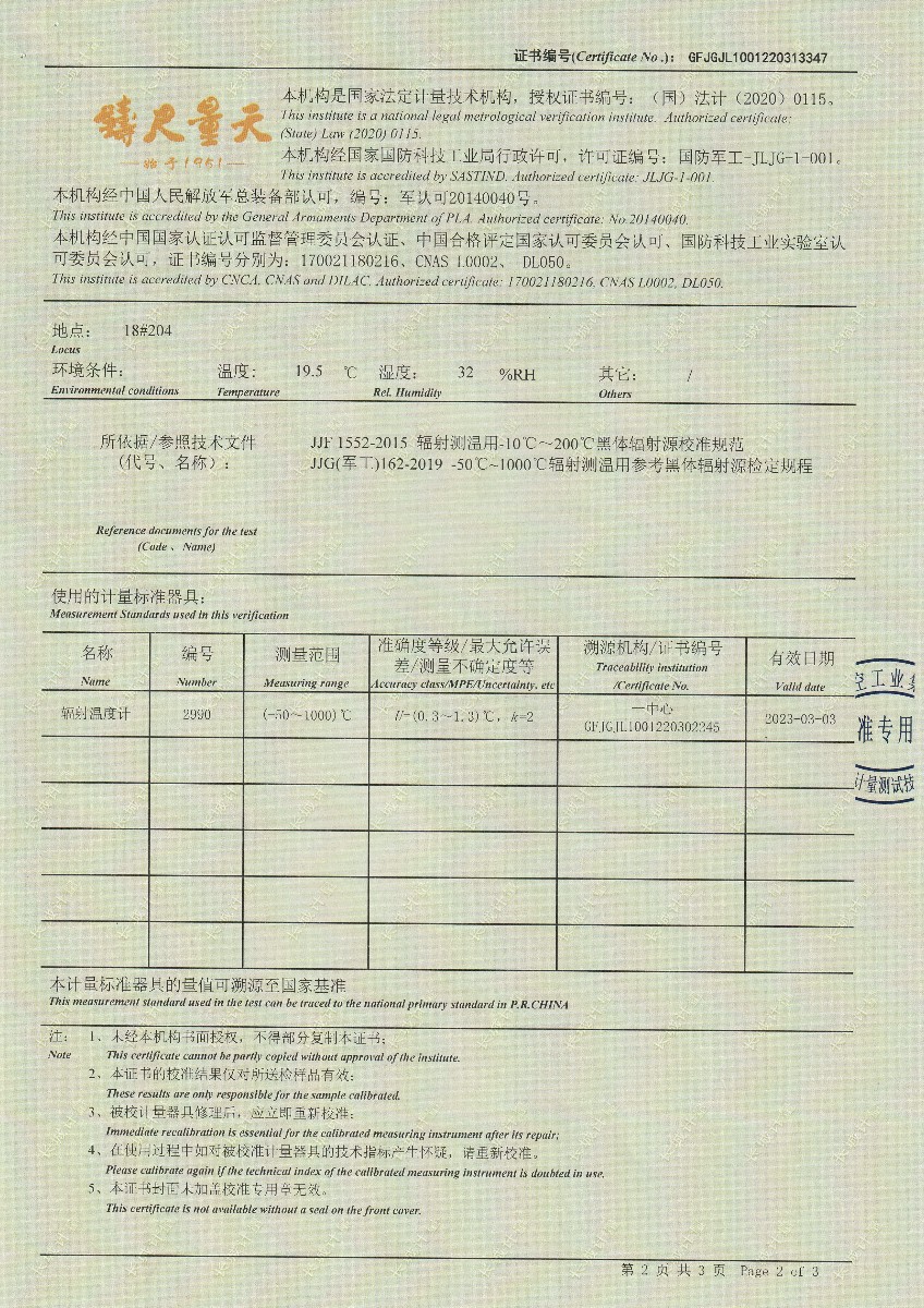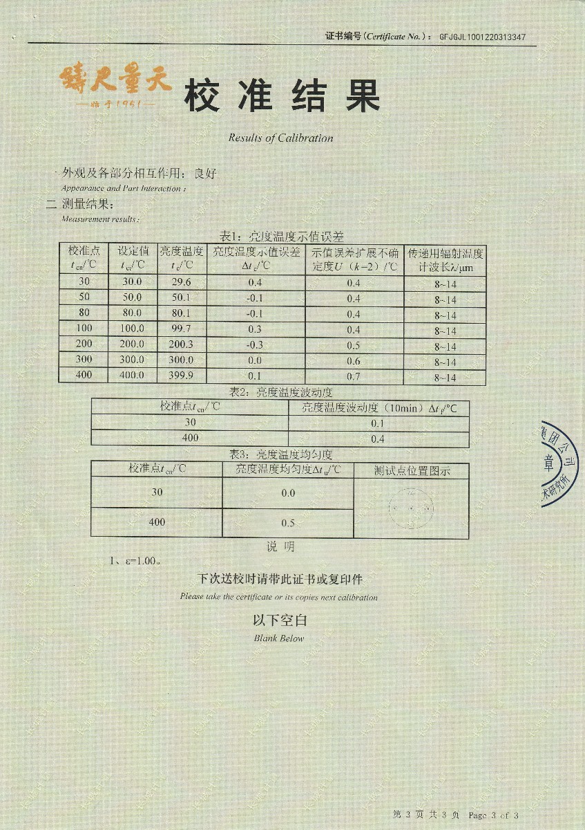 | 上一條:嘉興尚嘉智能技術(shù)有限公司黑體輻射源(DY-HT2D) | 下一條:高精度制冷恒溫槽(-80~100℃)校準(zhǔn)證書 |